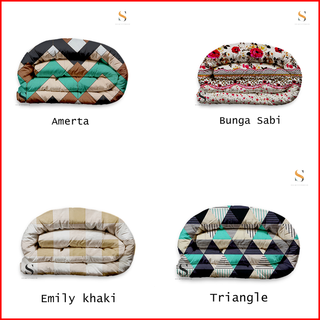 Amerta, Night Sky, Bubblegum, Starmoon, Keropi, Kotak Abu, Kotak Navy, Kotak Hitam, Kotak Putih, Swan Abu, Swan Pink, Triangle Pink, Jeju Hijau, Jeju Grey, Jeju Navy, Jeju Hitam, Daun Hitam, Dino Biru, Emily Pink, Emily Khaki, Emily Biru, Emily Abu, Bunga Sabi, Triangle Blue, Pajero Abu, Pajero Hitam, Jeju Maroon, Mickey Red, Doraemon, Teralis Batik, Yellowstar