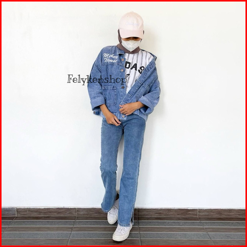 Jaket Jeans Oversize Bordir Kode Mp 069 B Jaket Denim Wanita Jaket Jeans Bordir