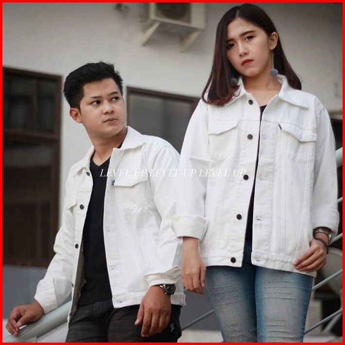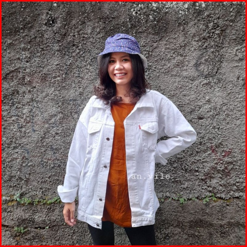 Jaket Jeans Putih Wanita Oversize Jacket Denim White Basic Plain