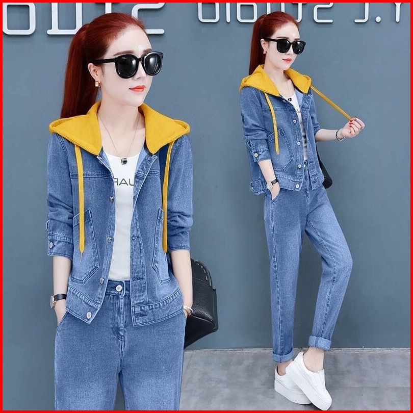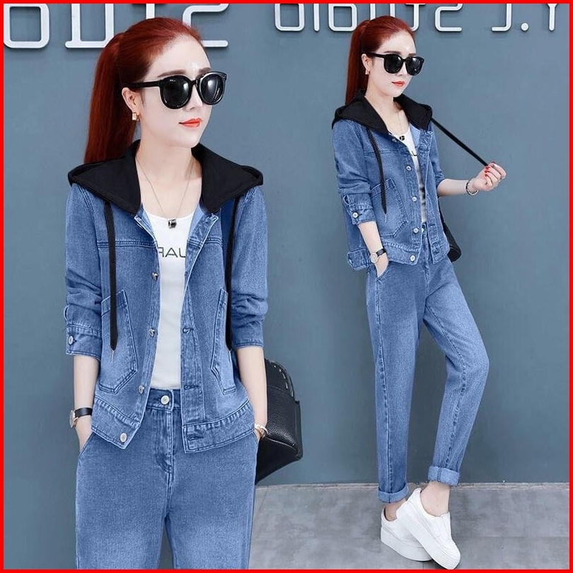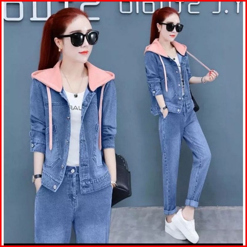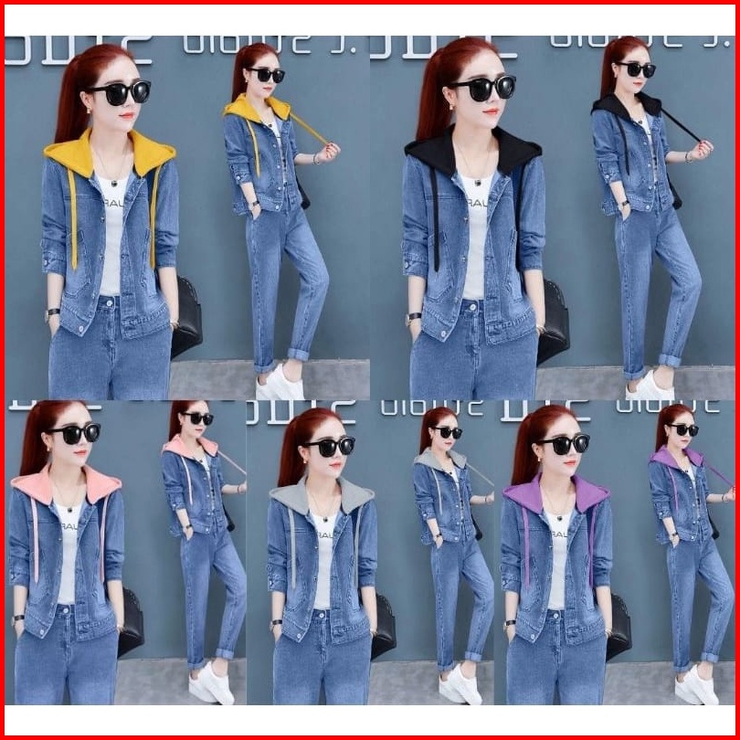 Jaket Jeans Original Jaket Hoodie Jeans Wash Wanita Kombinasi