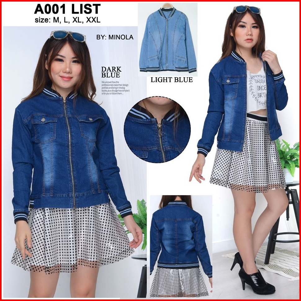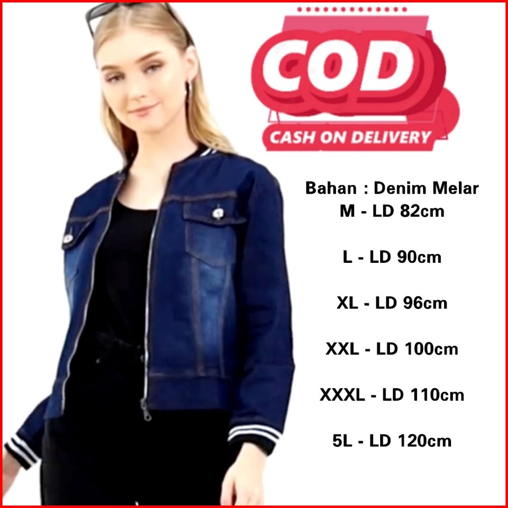 Jaket Jeans Wanita Jumbo Oversize Bomber Terbaru Resleting Murah