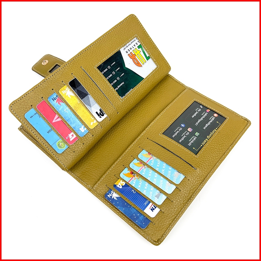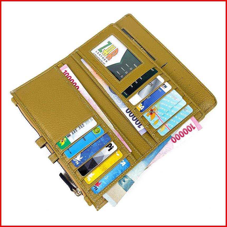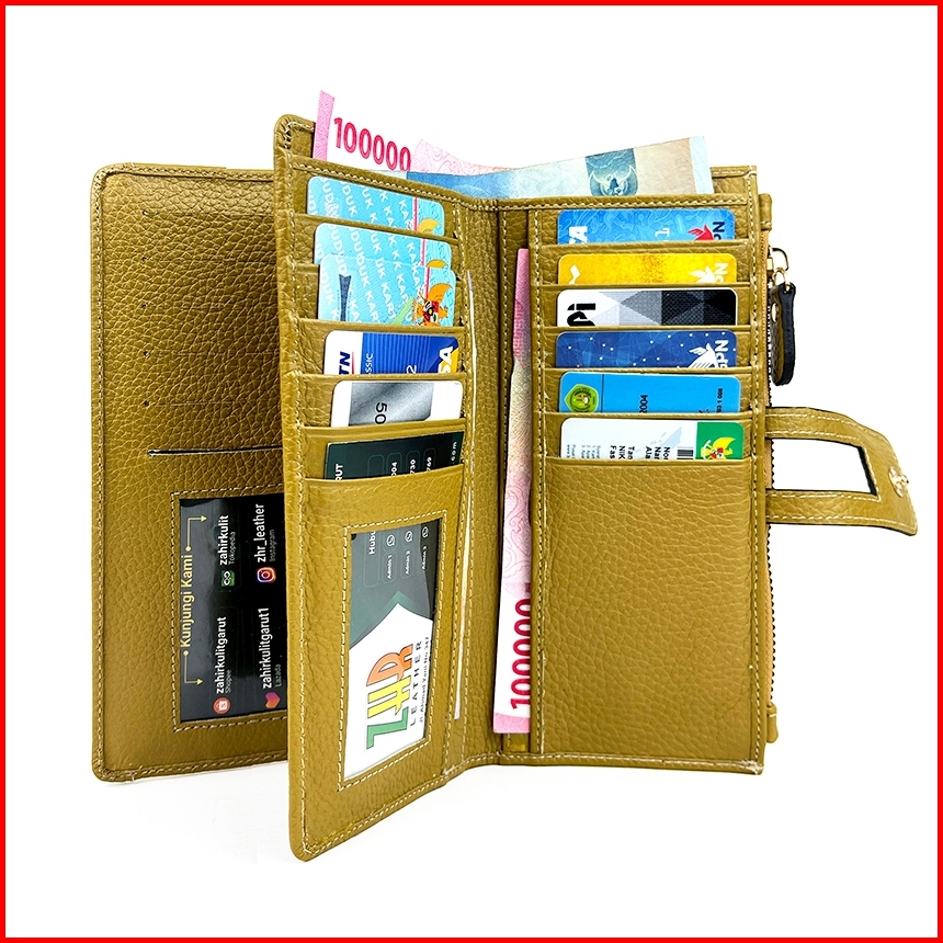 Dompet Kulit Wanita Model Saku Panjang Bahan Kulit Sapi Asli Garut