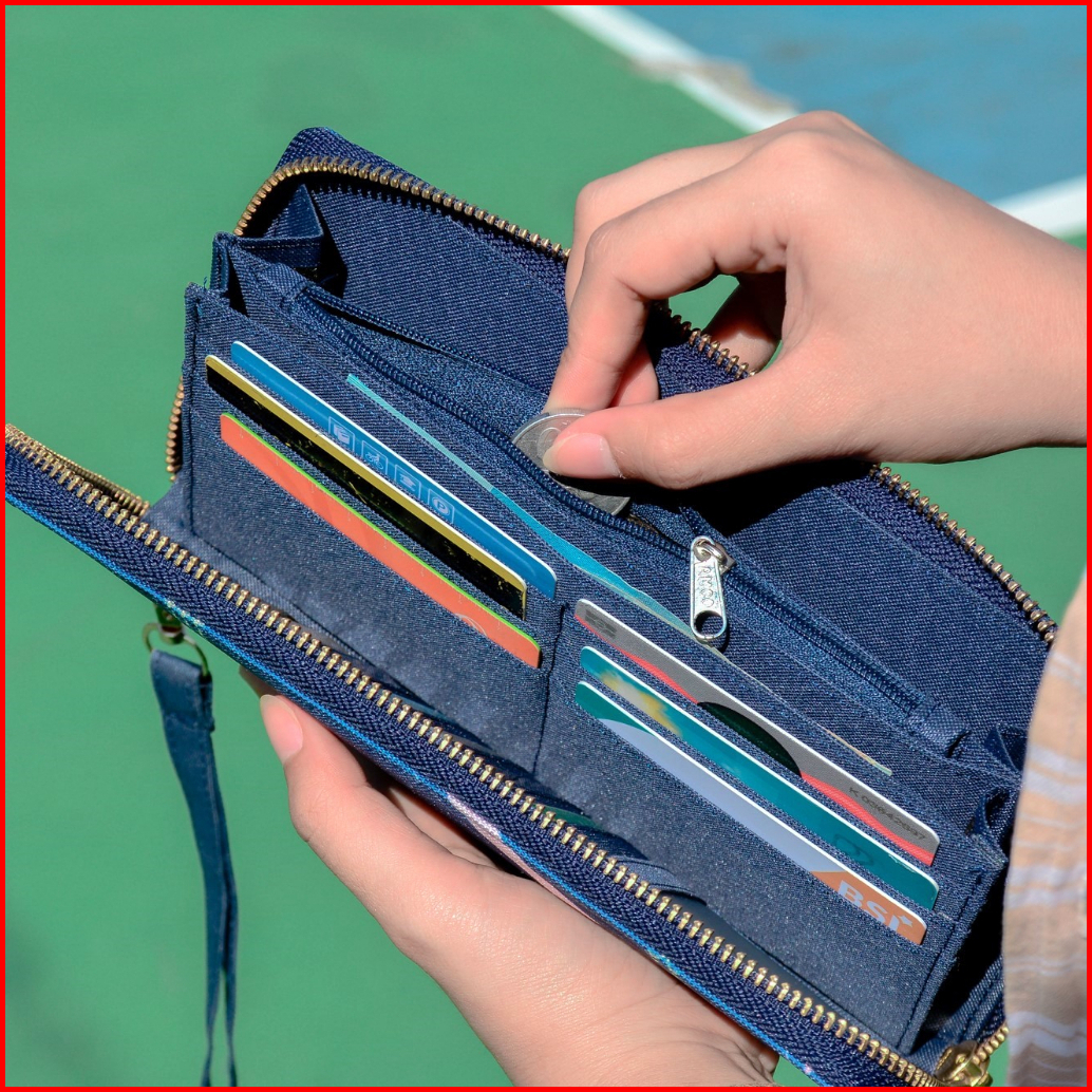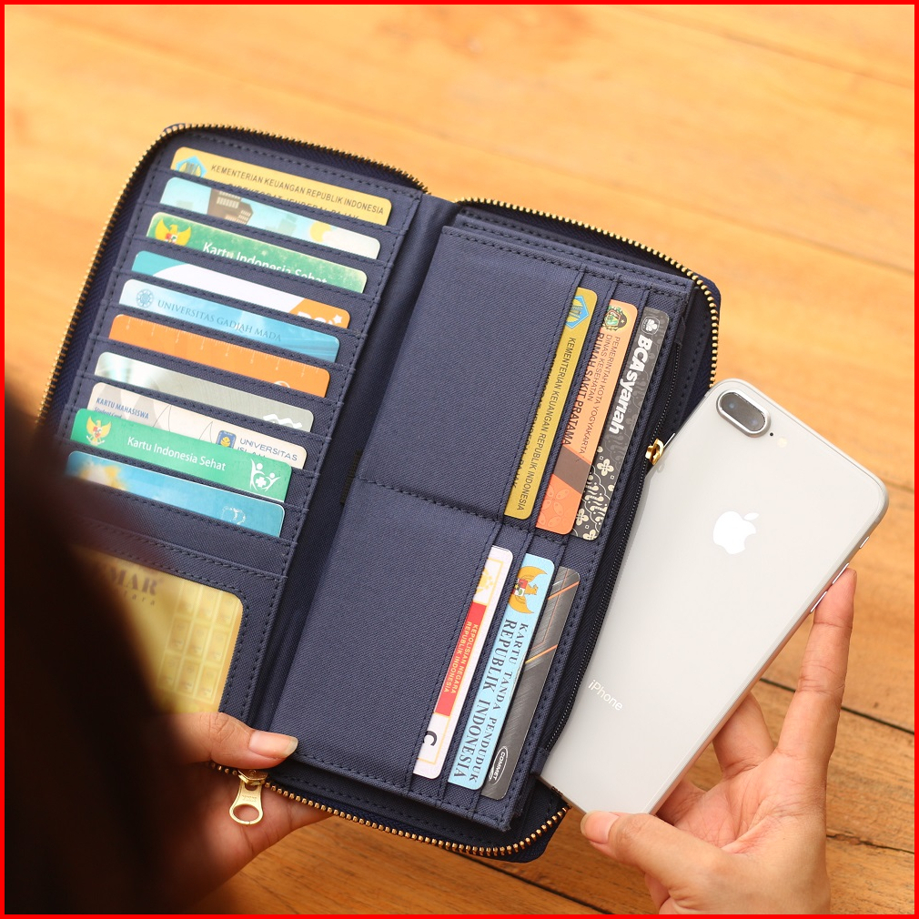 Dompet Panjang Wanita Dompet Lipat Cewek Donpet Uang Koin Long Wallet Esme Blue Block
