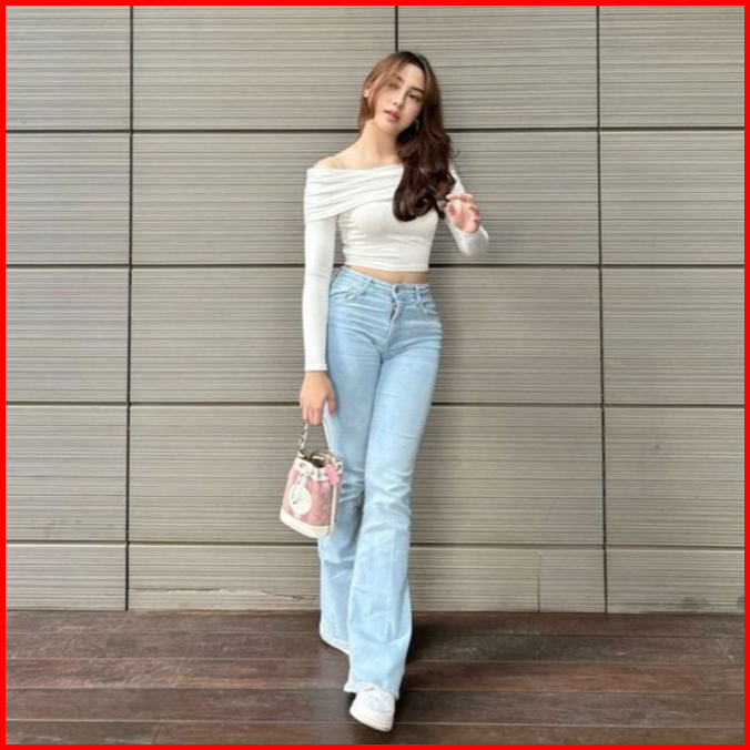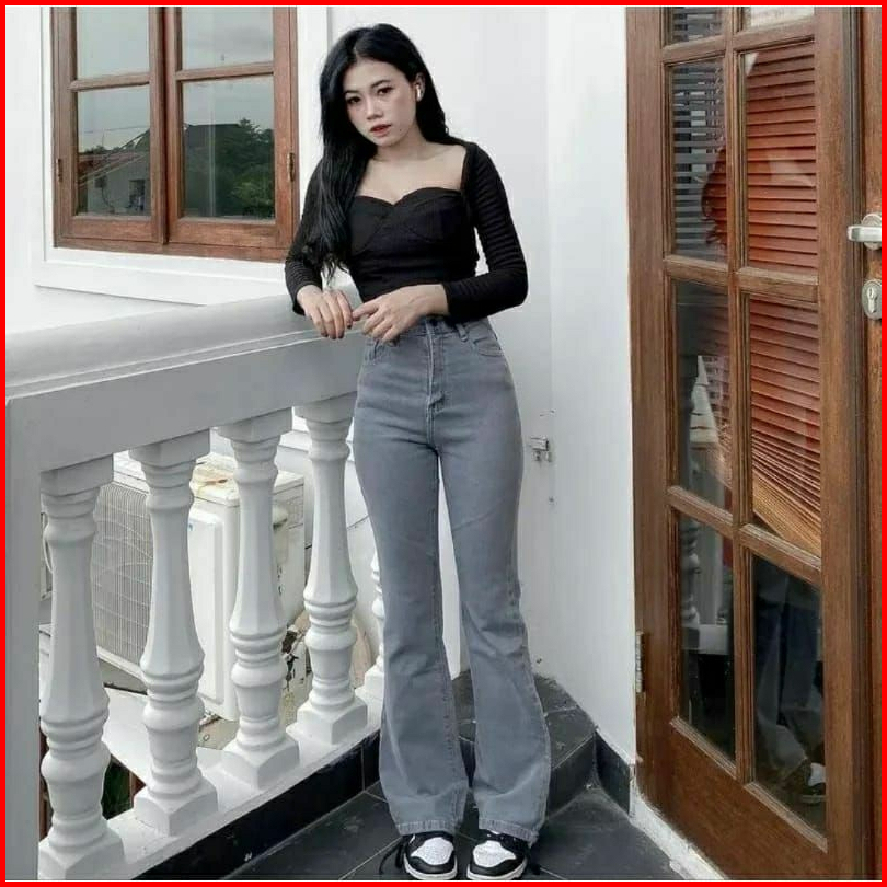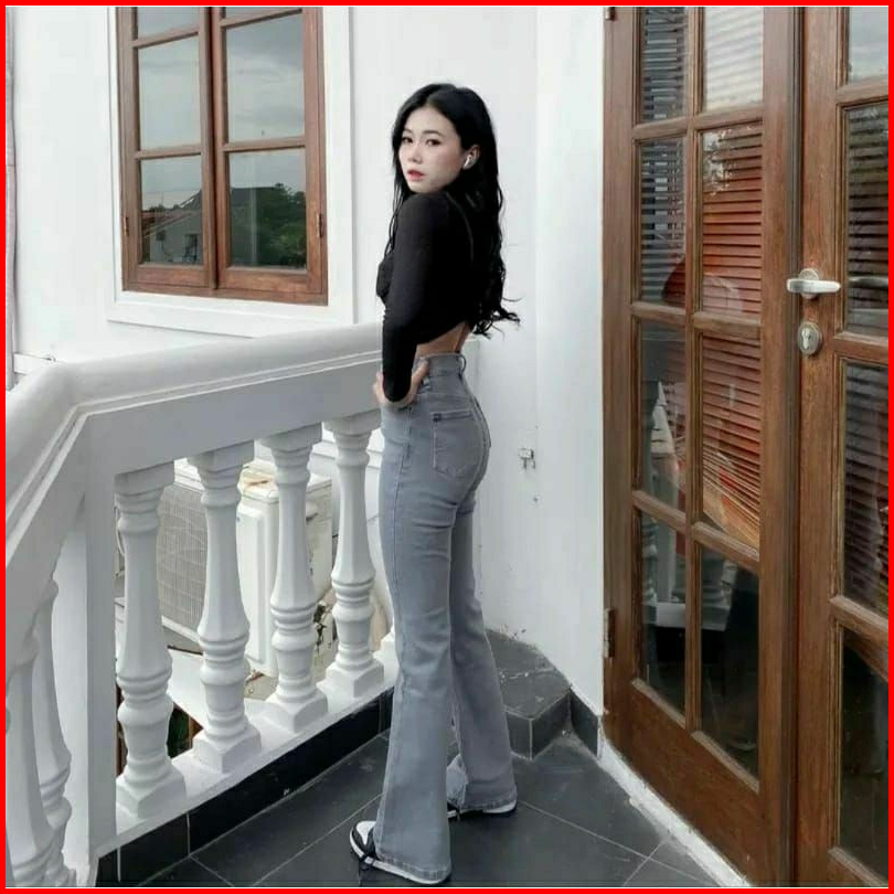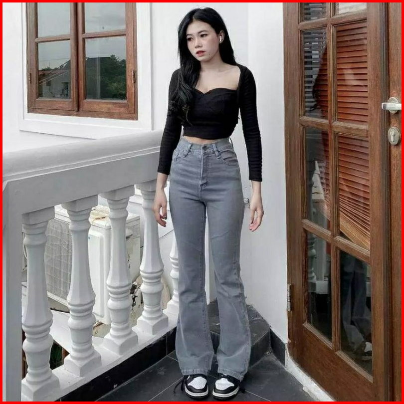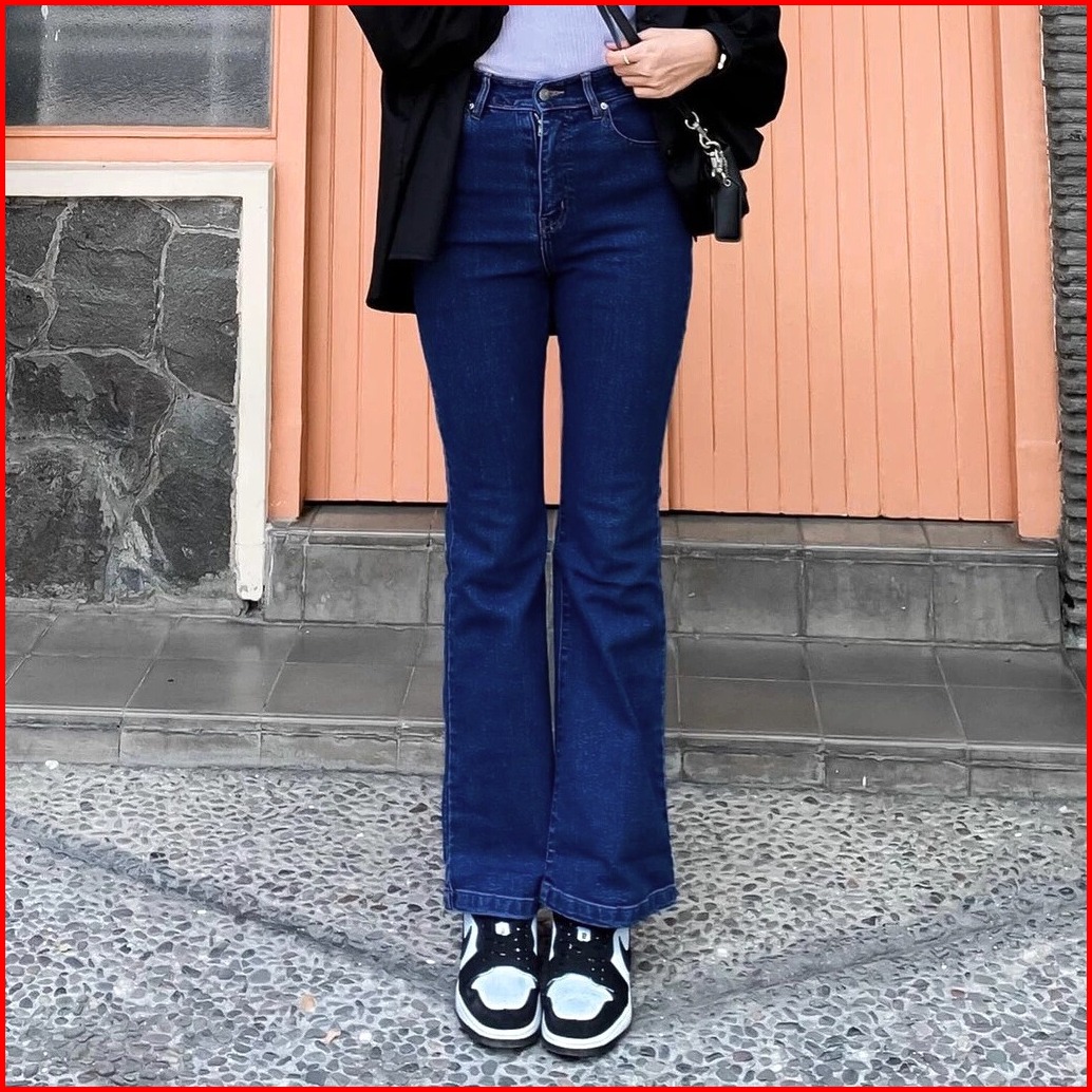 Celana Cutbray Jeans Wanita Highwaist Stretch Premium Kekinian Panjang Melar Flared Quensafashion