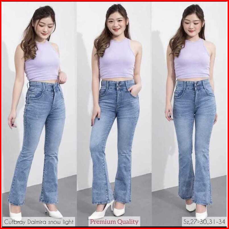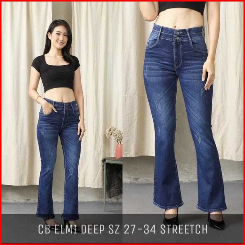 Cutbray Jeans Highwaist Elmi Celana Cutbray Jeans Wanita Ripped
