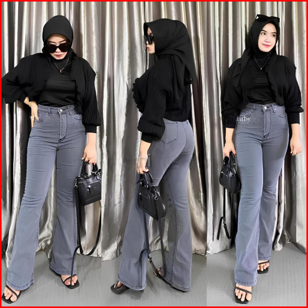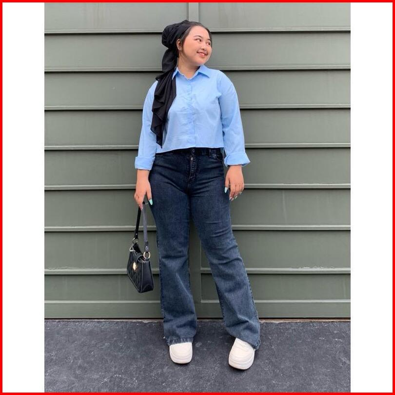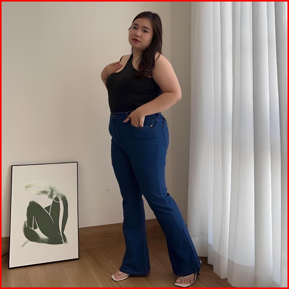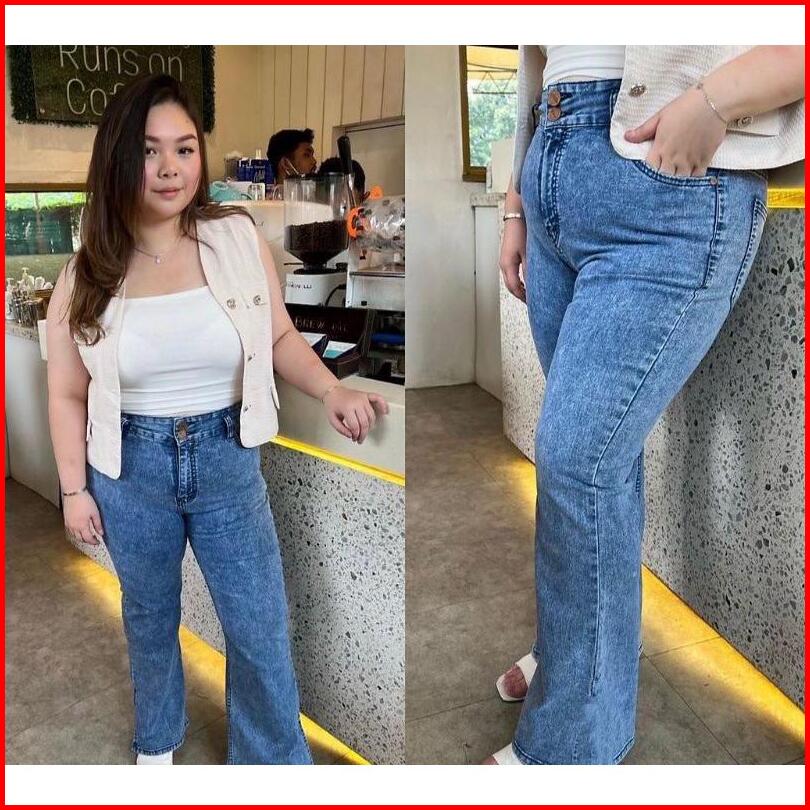 Highwaist Cutbray Jeans Stretch Wanita Jumbo 35-42 Big Size Muat Sampai Bb 100 Kg