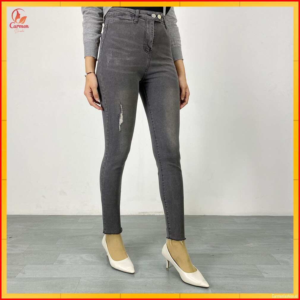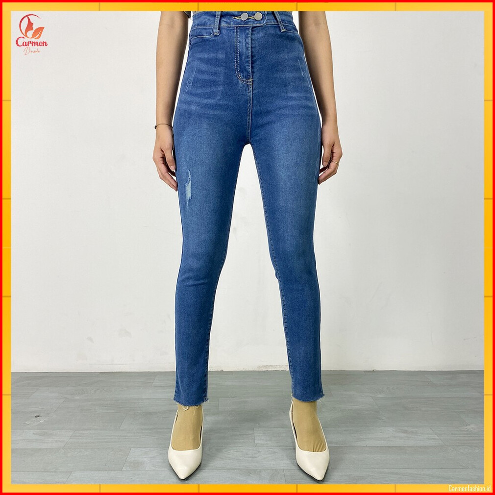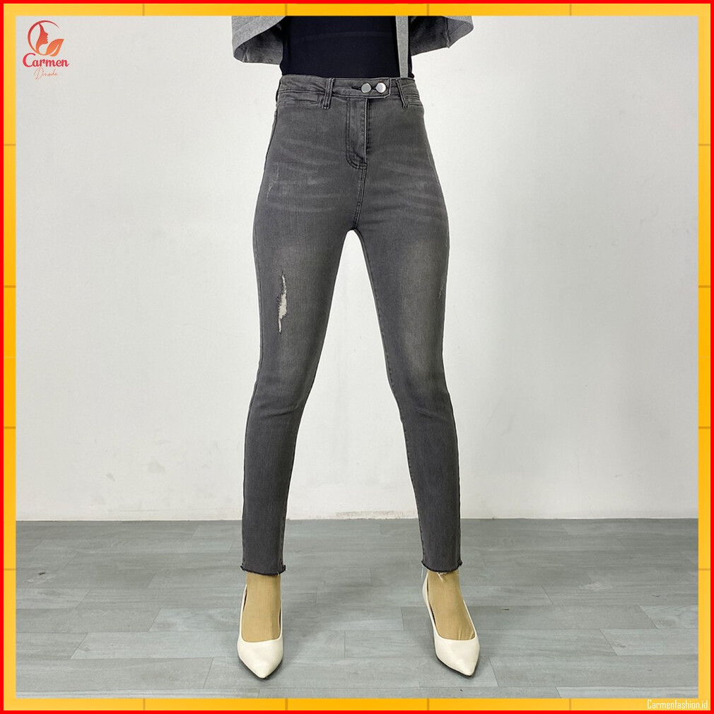 Celana Jeans Wanita Stretch Ripped Jeans High Waist Celana Denim Highwaist Model Unfinished Cut Cf P612