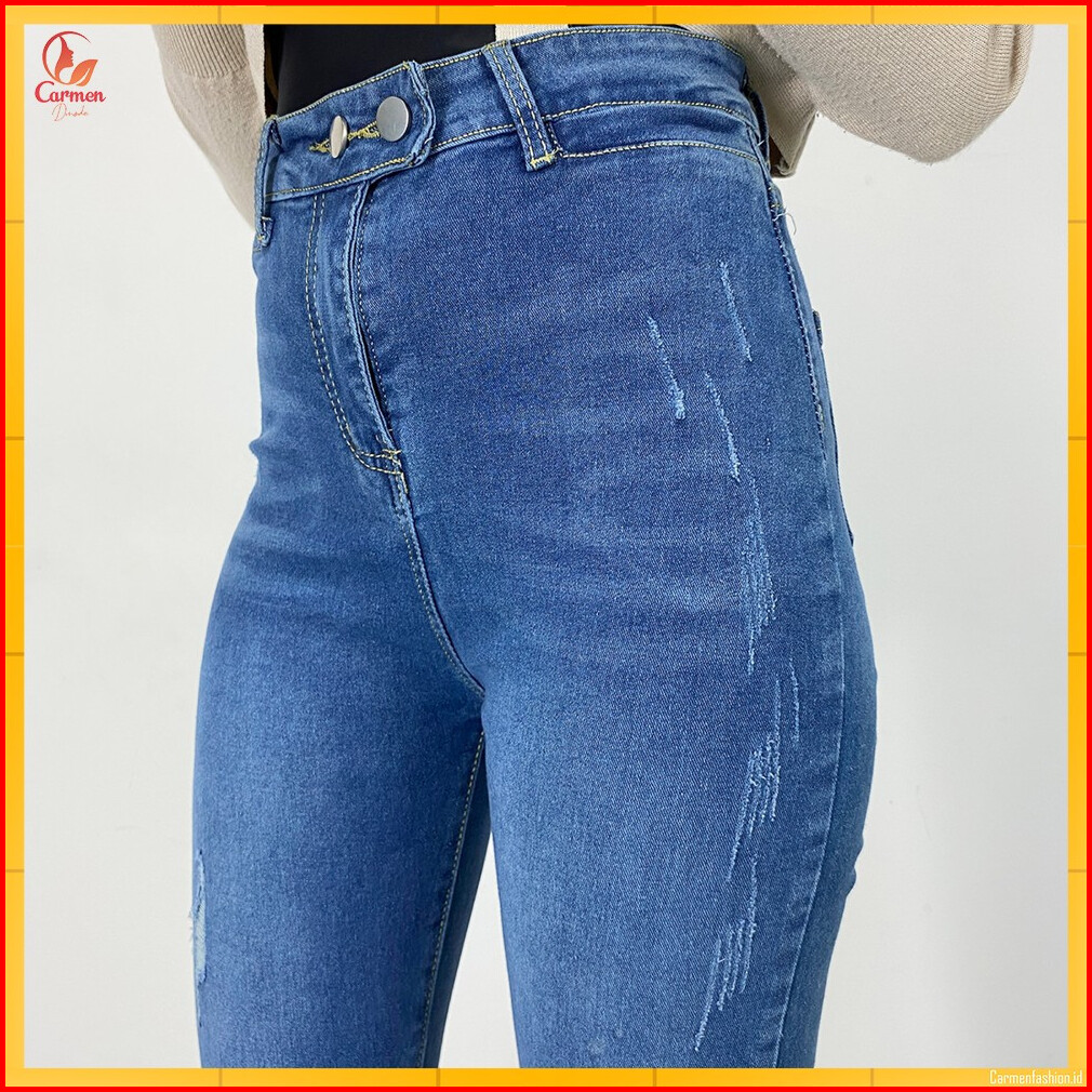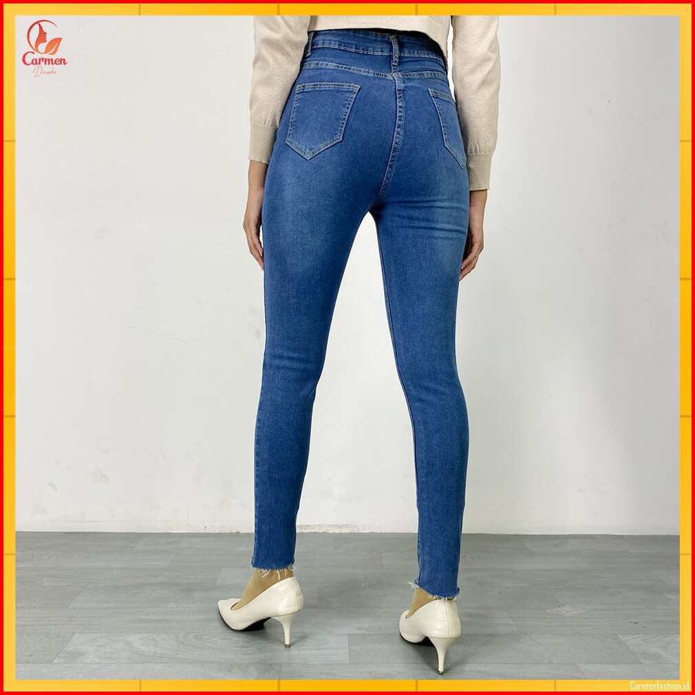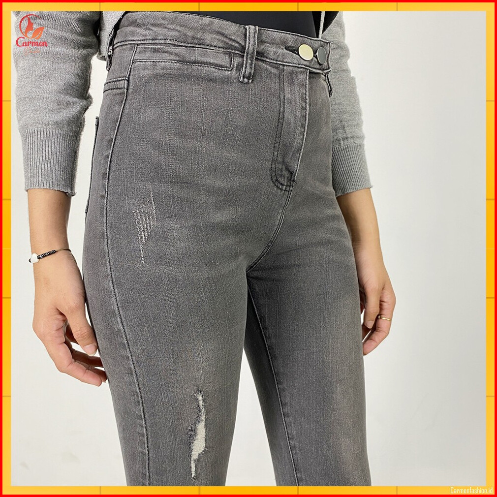 Celana Jeans Wanita Stretch Ripped Jeans High Waist Celana Denim Highwaist Model Unfinished Cut Cf P612