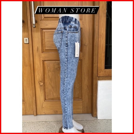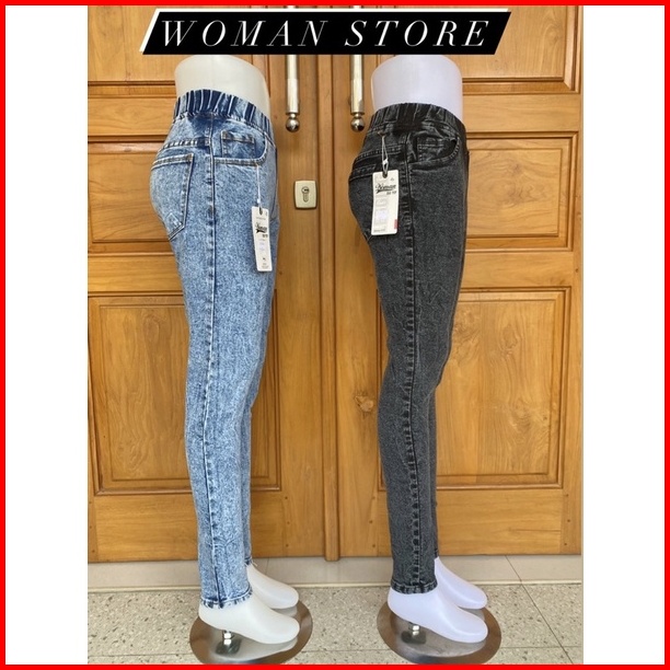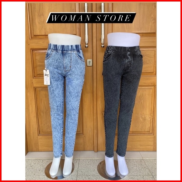 Celana Jeans Snow Pinggang Karet Bahan Melar Nyaman Di Pakai