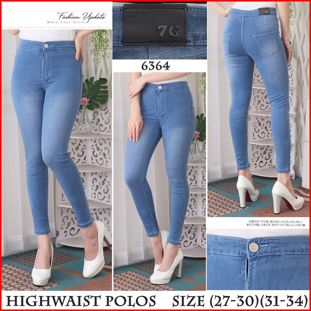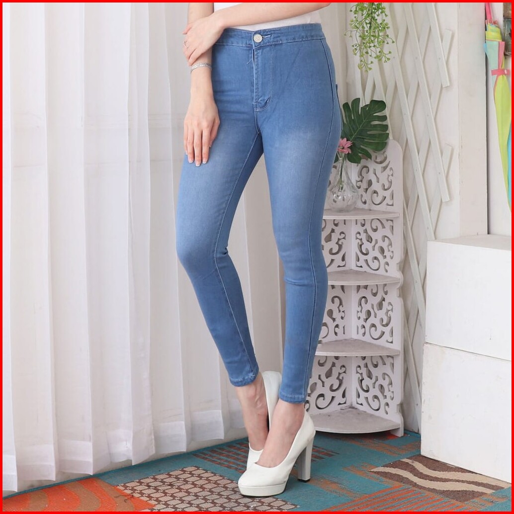 7c-g Celana Jeans Premium Highwaist Polos Biru Muda Pinggang Tinggi Jeans Streach 27 - 34