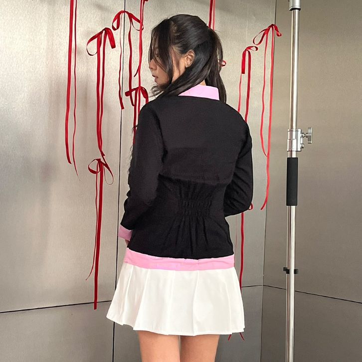 Kemeja Blouse wanita Slim Fit Long Sleeve Kombinasi 2 Warna Missie - Elanor
