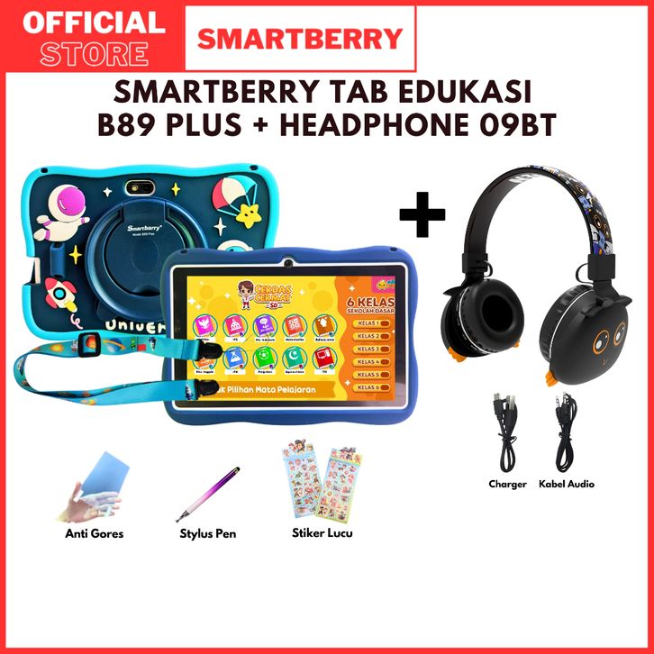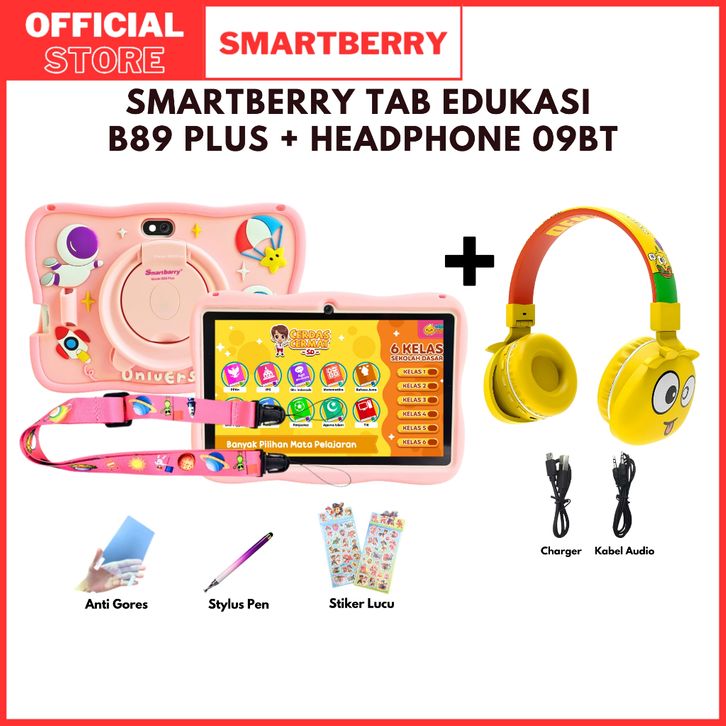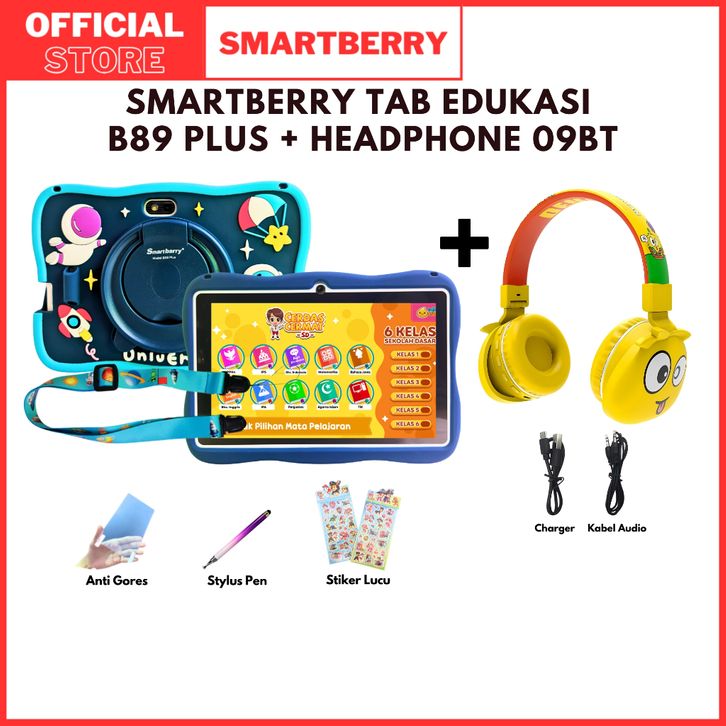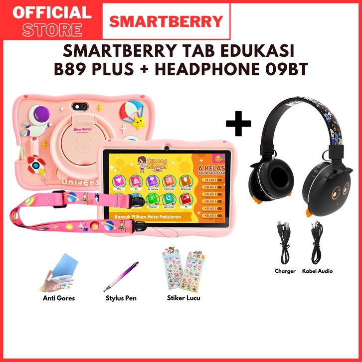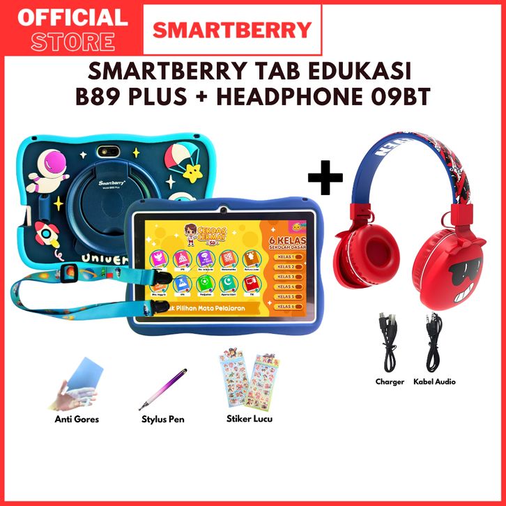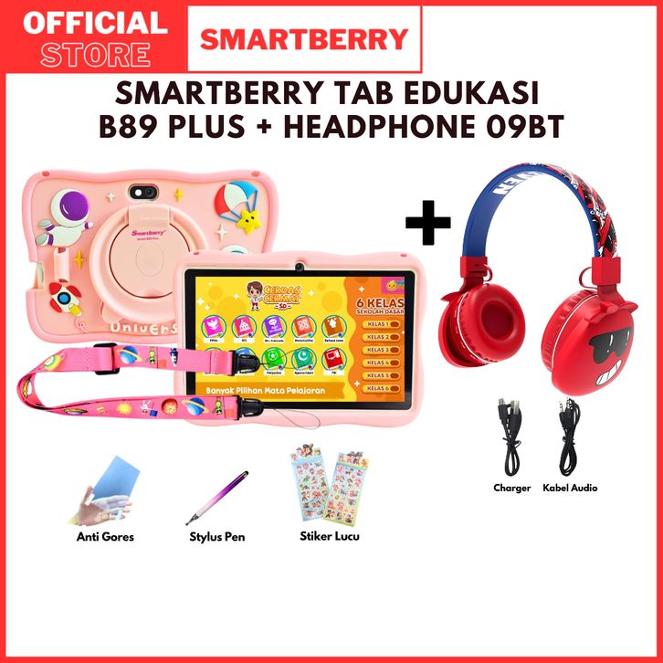 TABLET ANAK SMARTBERRY SMART TAB B89 PLUS + HEADPHONE 09BT KARAKTER PAKET TABLET BELAJAR HIBURAN BONUS HADIAH WIFI 7 INC