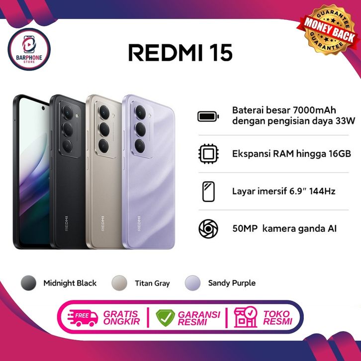 XIAOMI REDMI 15 RAM 8GB/128GB 8GB/256GB KAMERA 108 MP SUPER JERNIH MEDIATEK HELIO G91 ULTRA 33W FAST CHARGING ORIGINAL