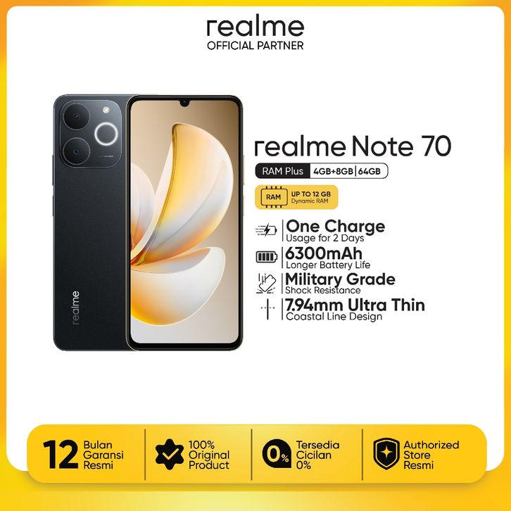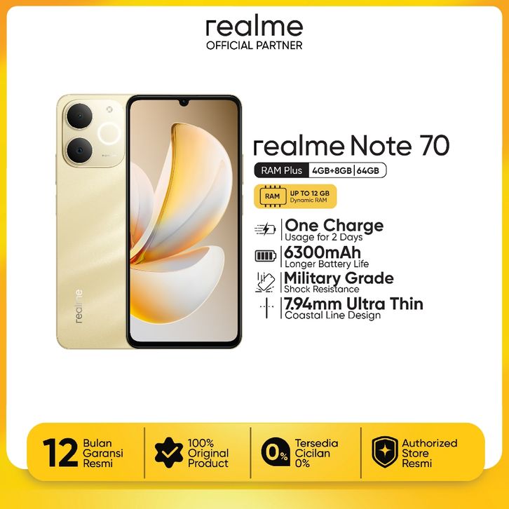 [Mall] Realme Note 70 4GB+8GB/64GB 6300mAh Battery Hp Murah Tanpa DP - Garansi Resmi 1 Tahun [Official Store]