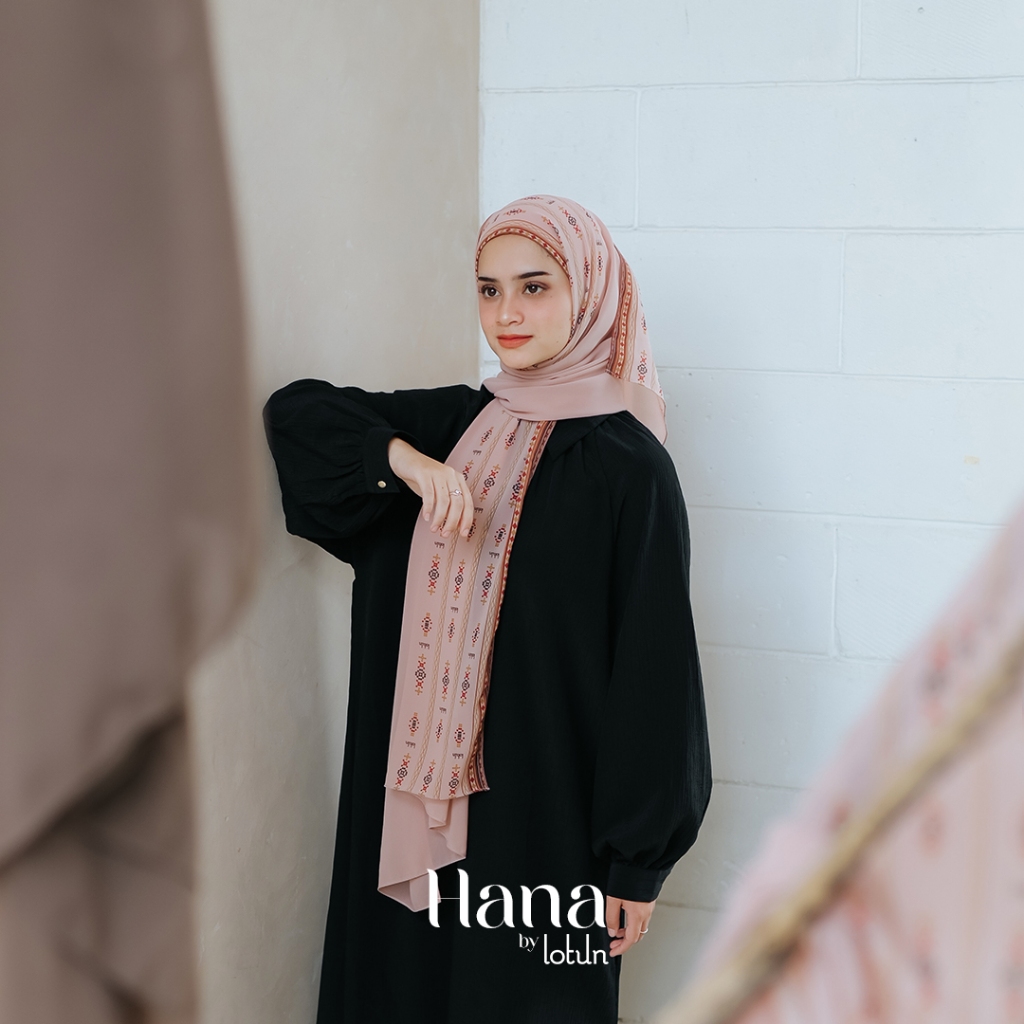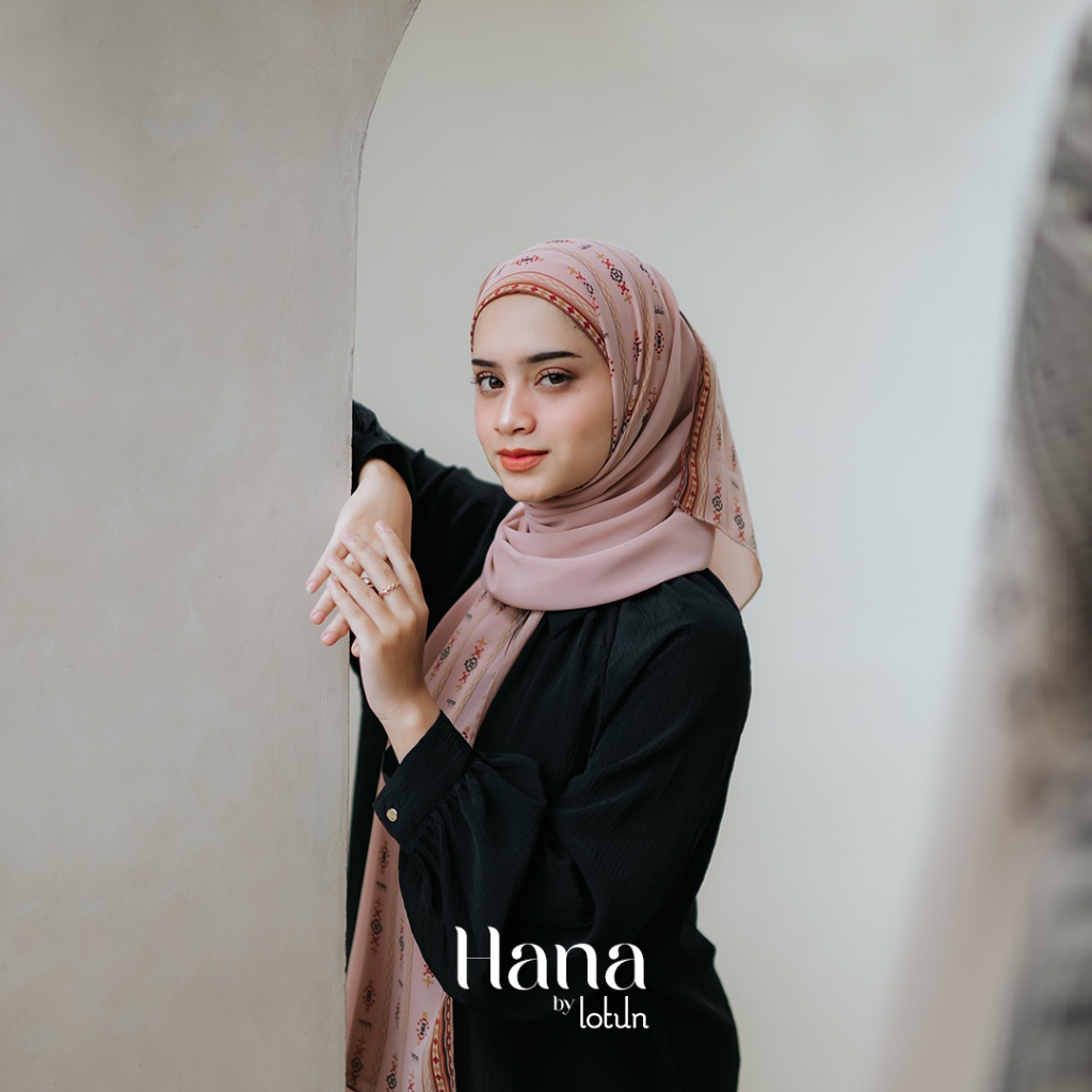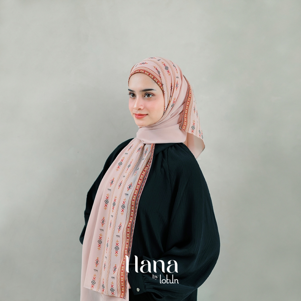 [PROMO] Lotun Hana Series - Hijab Pashmina Instan Printing Motif Etnik Material Premium - Peach