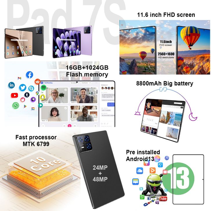 Sirkels Tablet Pad 7S | Ram 16Gb + 1024Gb Rom | Tablet + Mouse + Keyboard + Case | 5G Dual Sim Wifi | Layar Besar 11.6 I