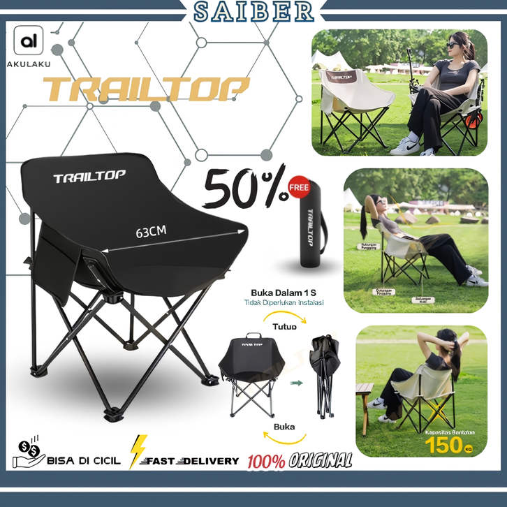 TRAILTOP Kursi Lipat Outdoor Portable Camping Kemah kuat dan lebar 63cm Satu Set Lesehan Santai Eiger Best Seller