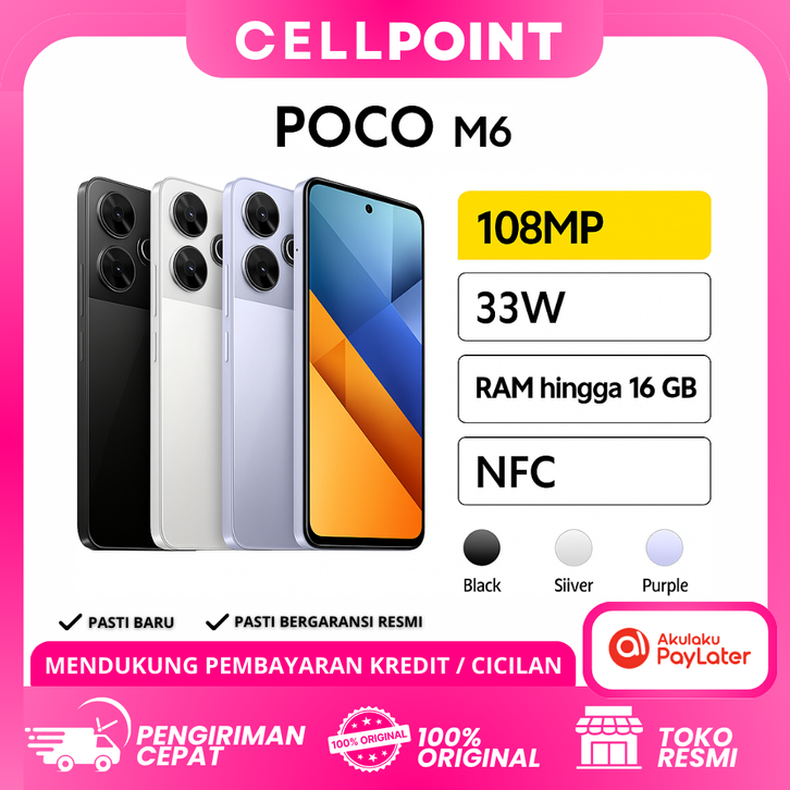 HP XIAOMI POCO M6 (8GB/256GB) KAMERA UTAMA 108 MP KELAS PRO HELIO G91-ULTRA YANG TANGGUH ORIGINAL OFFICIAL STORE