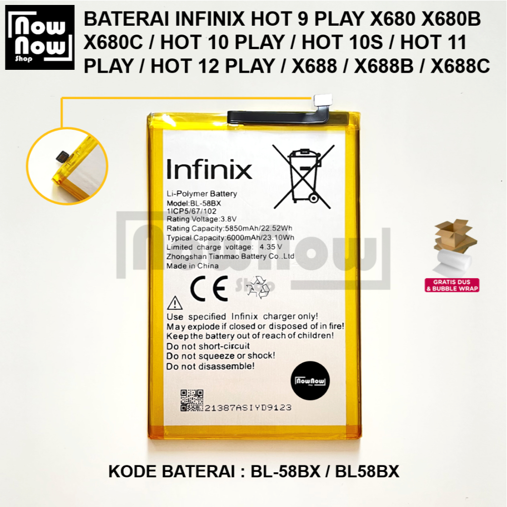 [Star] Baterai Infinix HOT 9 PLAY X680 X680B X680C / HOT 10 PLAY / HOT 10S / HOT 11 PLAY / HOT 12 PLAY BL-58BX BL - 58BX