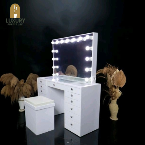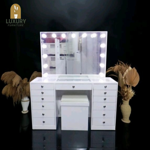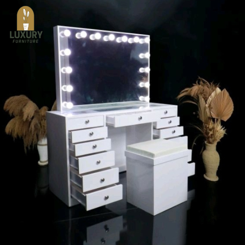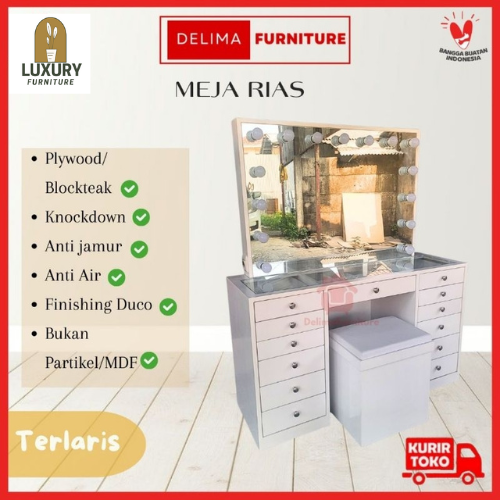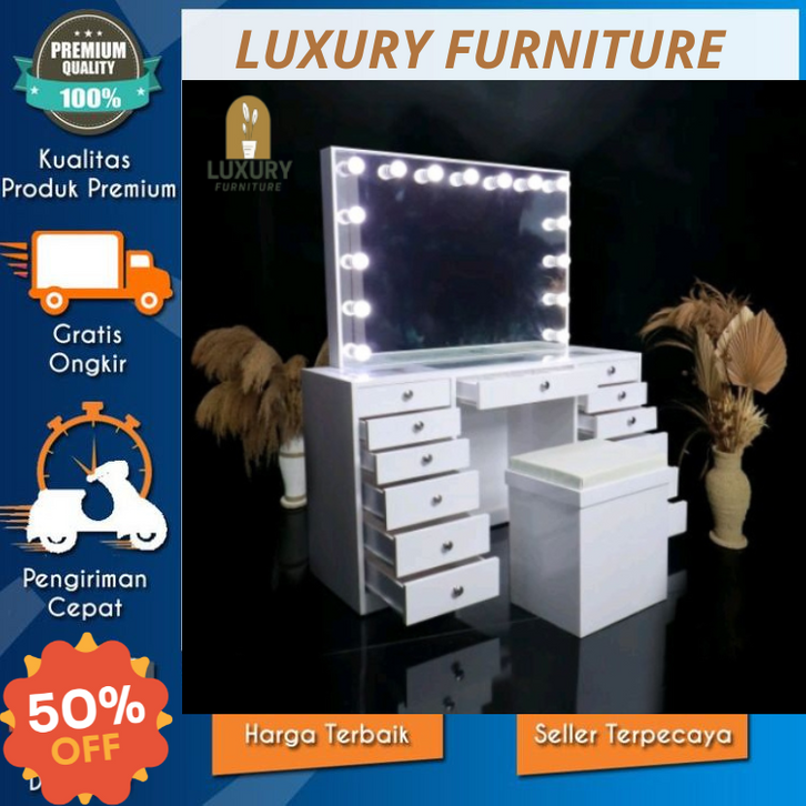 Meja Rias Minimalis Lampu LED Cermin Kursi Pita Meja Makeup Best Seller Berkualitas Termurah Terlaris