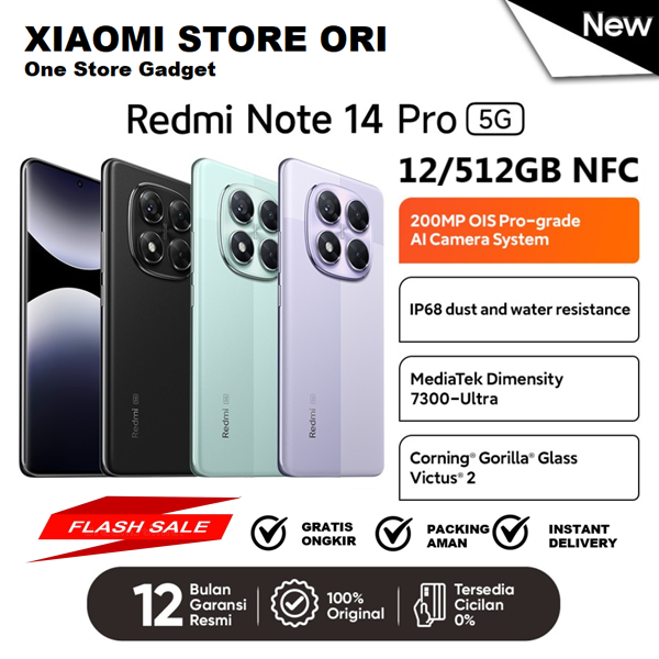HP REDMI NOTE 14 PRO 5G 12/512GB GARANSI RESMI 200MP AI OIS Camera MediaTek Dimensity 7300-Ultra 5110 mAh turbo 45W