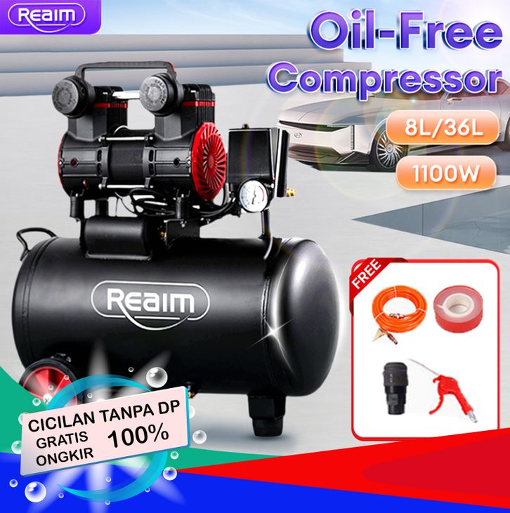 TANPA DP - REAIM AIR COMPRESSOR 12/36L KOMPRESOR ANGIN OILESS LISTRIK 1100W PORTABLE ALAT TEKANAN UDARA