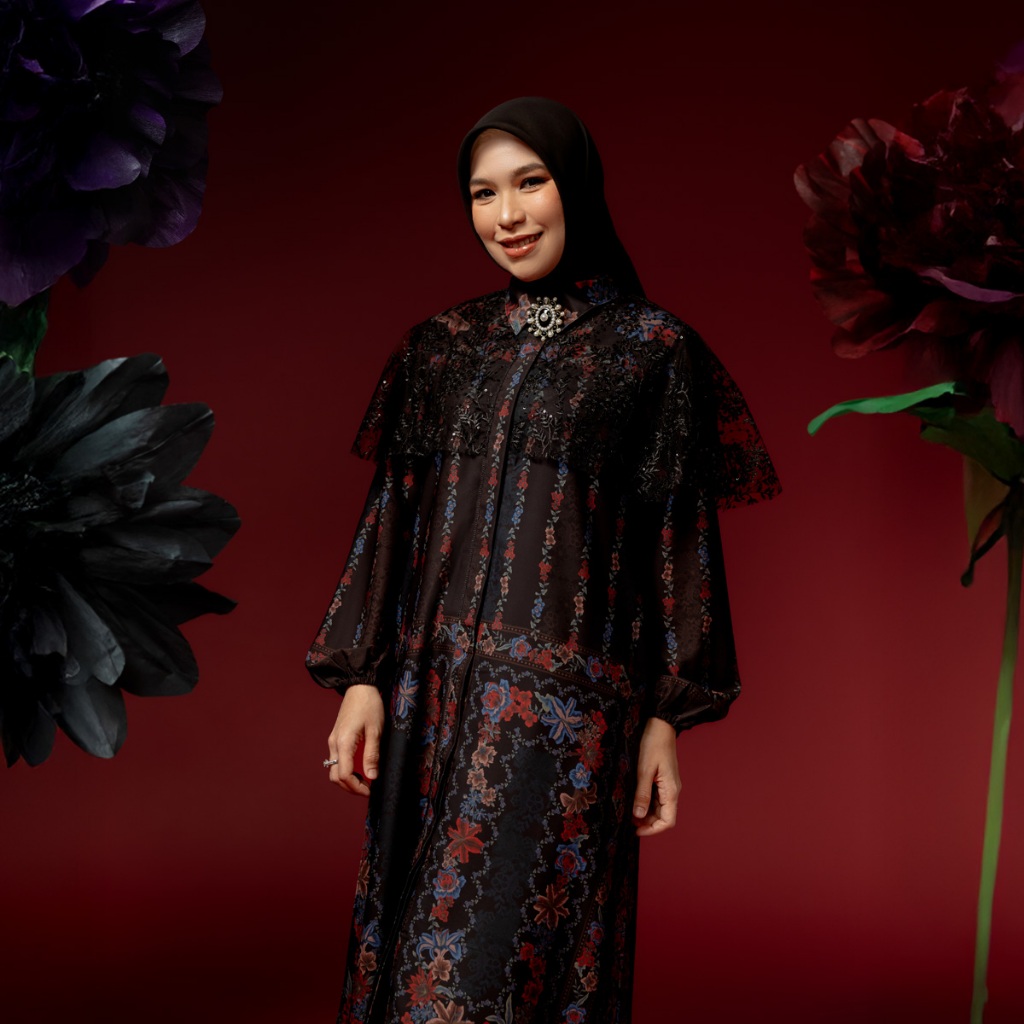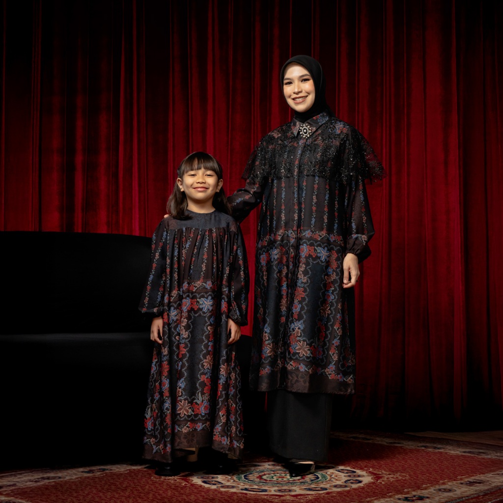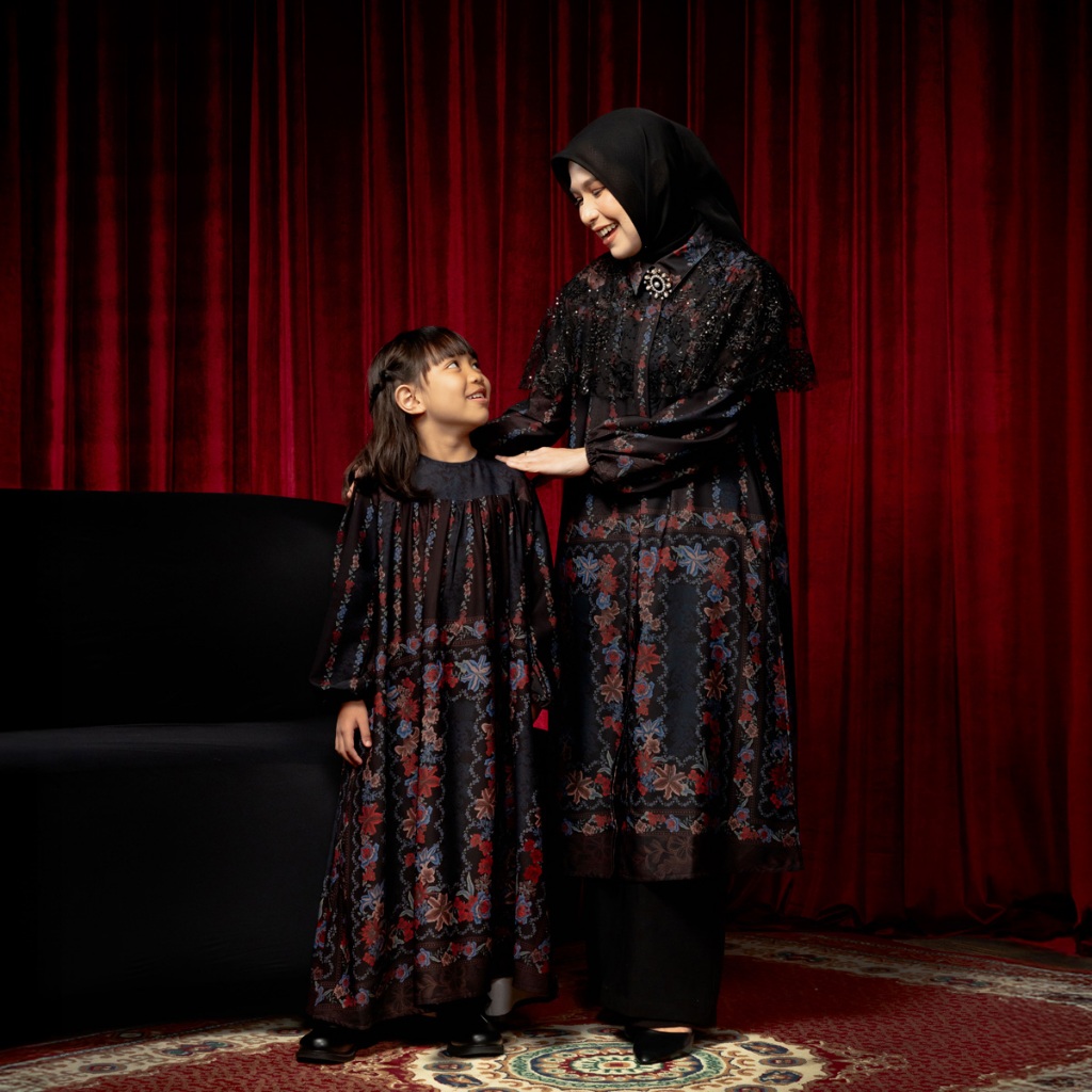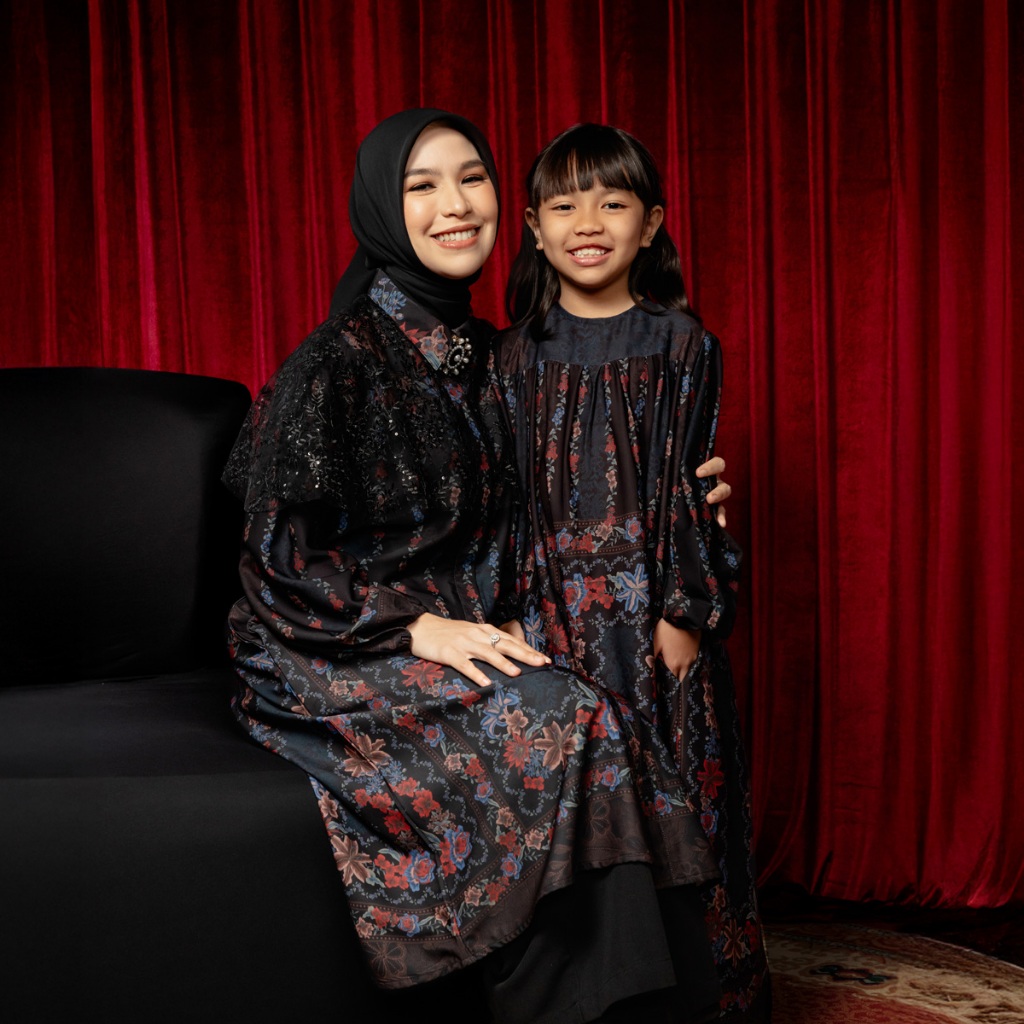 DISKON 25% BIA by Zaskia Mecca Family Set Mom & Kids - Raya Collection Noir Floral Edition DRESS GAMIS WANITA KEKINIAN