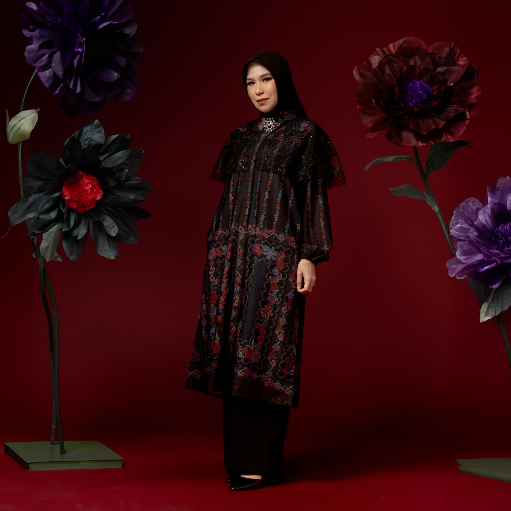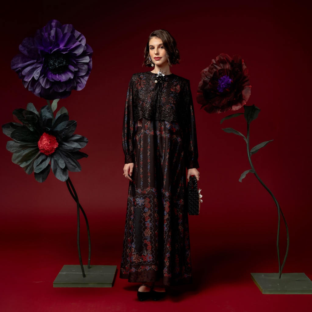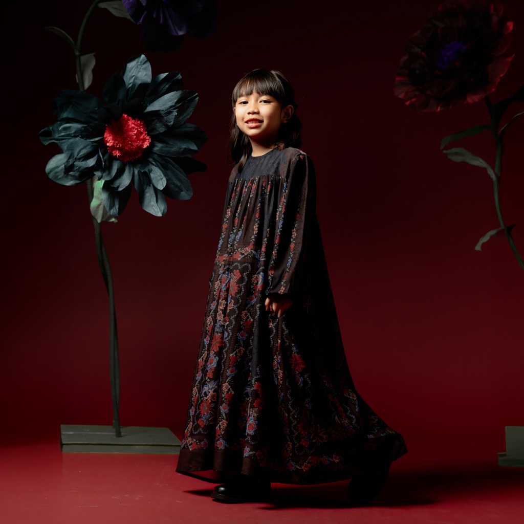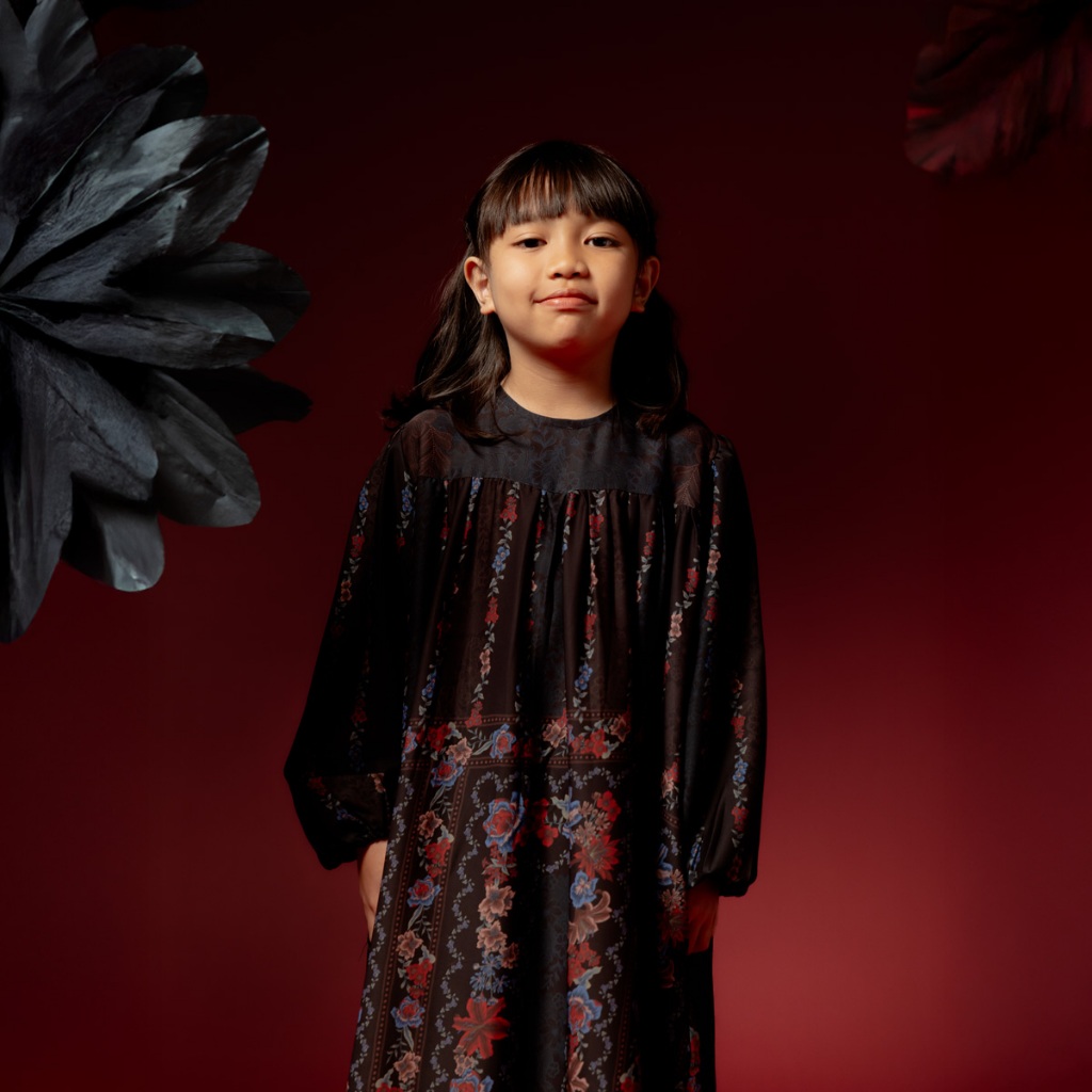 DISKON 25% BIA by Zaskia Mecca Family Set Mom & Kids - Raya Collection Noir Floral Edition DRESS GAMIS WANITA KEKINIAN