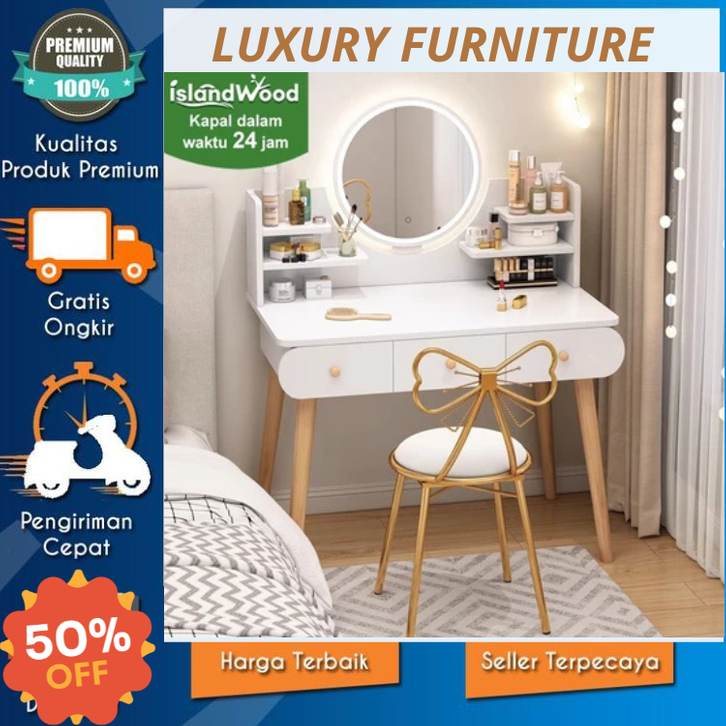 [Star] Meja Rias Aesthetic Minimalis Makeup Lampu Led Meja Rias Kayu Jati Terbaru 2025 Best Seller ORIGINAL