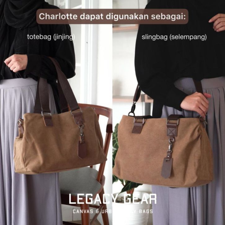 Tas selempang wanita tas kuliah kerja Charlotte Legacy Gear Canvas tote bag Slingbag