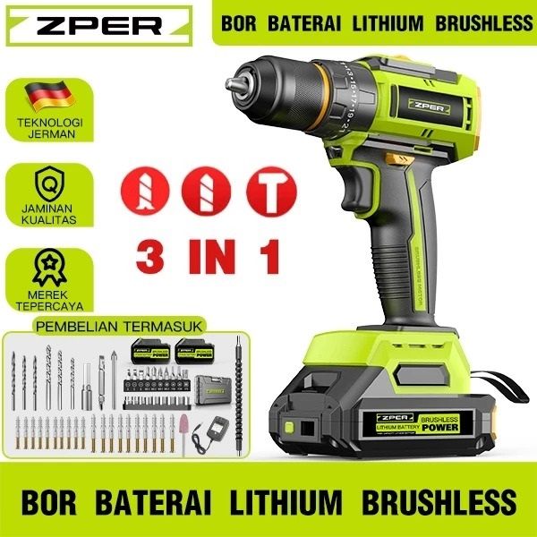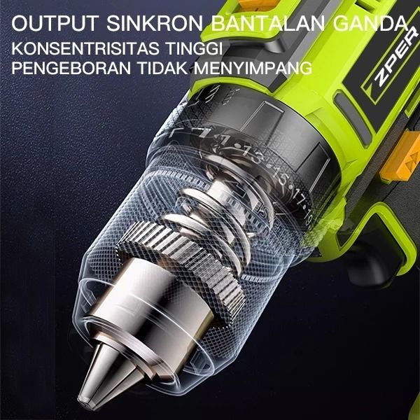 ZPER Mesin Bor 3in1 Cordless Impact Drill Screwdriver Multifunction bor listrik Bor Beton Kayu BsiTembok ZP035
