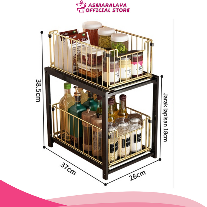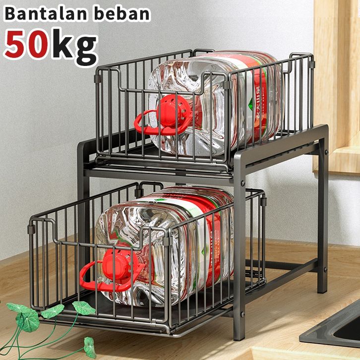 Rak Bumbu Dapur Serbaguna Bawah Wastafel Kitchen Keranjang Geser Laci Tarik Minimalis Modern