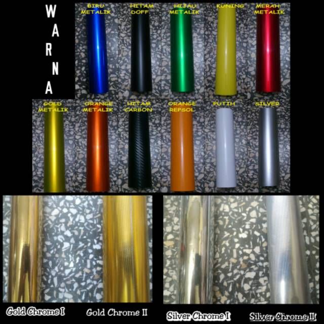Gold Chrome, Hitam kilap, Biru metalik, Hitam carbon, Merah metalik, Jalu As Roda, Silver metalik, Hitam doff, Gold metalik