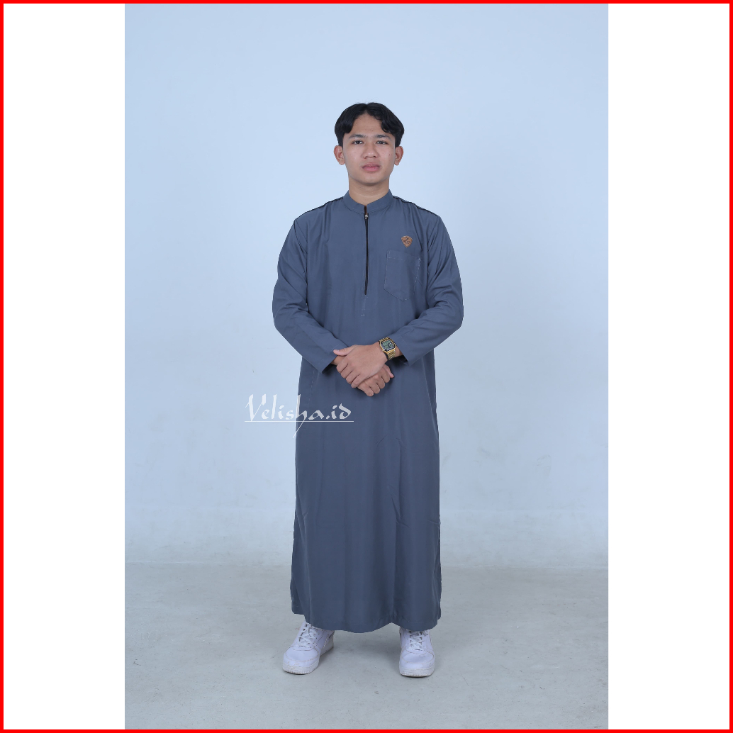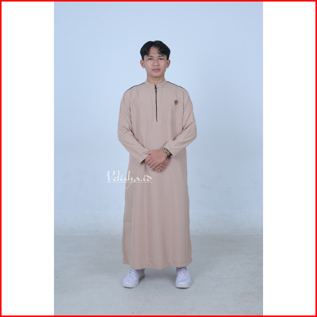 Jubah Gamis Pria Muslim Lengan Panjang Kekinian Model Resleting Terbaru - Jubah Pria Remaja Dewasa - Gamis Laki Laki - J