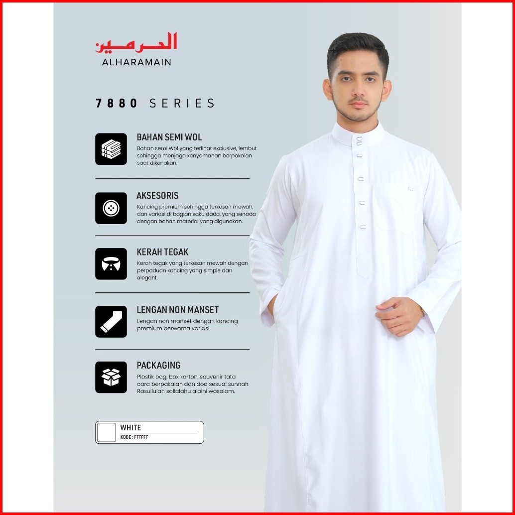 Al Haramain Series Semi Wol Thobe Hassan Jubah Gamis Pria Dewasa 241978 79 80 Putih