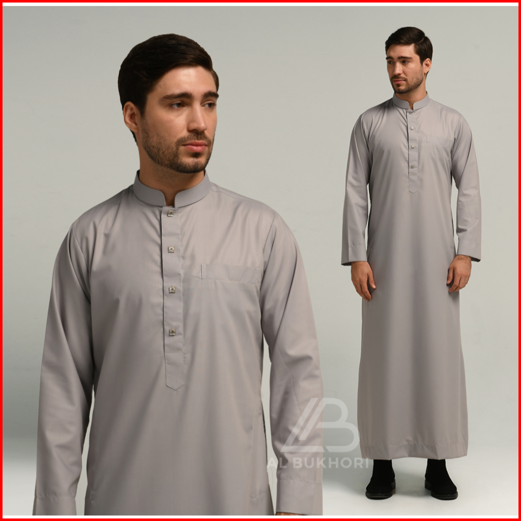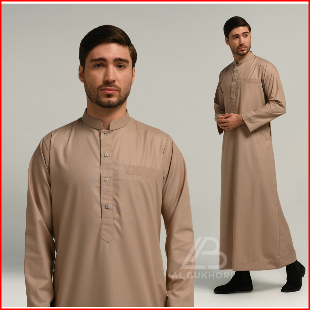 Al Bukhori - Tencel Gamis Thobe Jubah Pria Bodyfit Reguler Dewasa Premium Lengan Panjang - Jubah Khalid