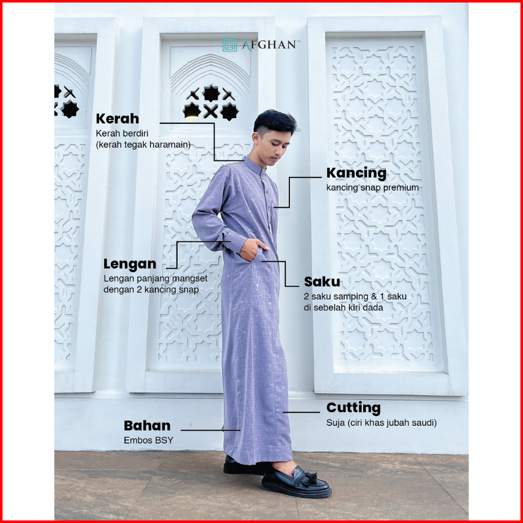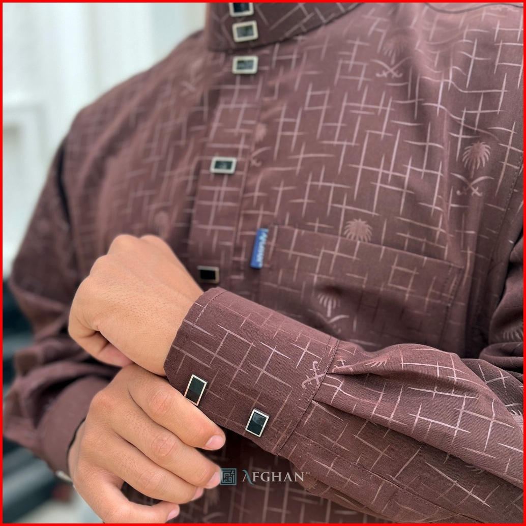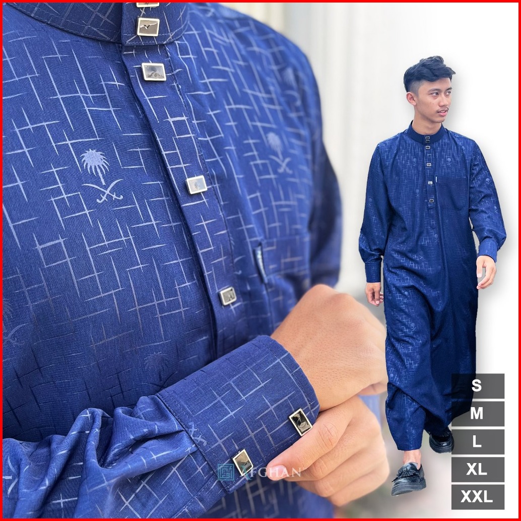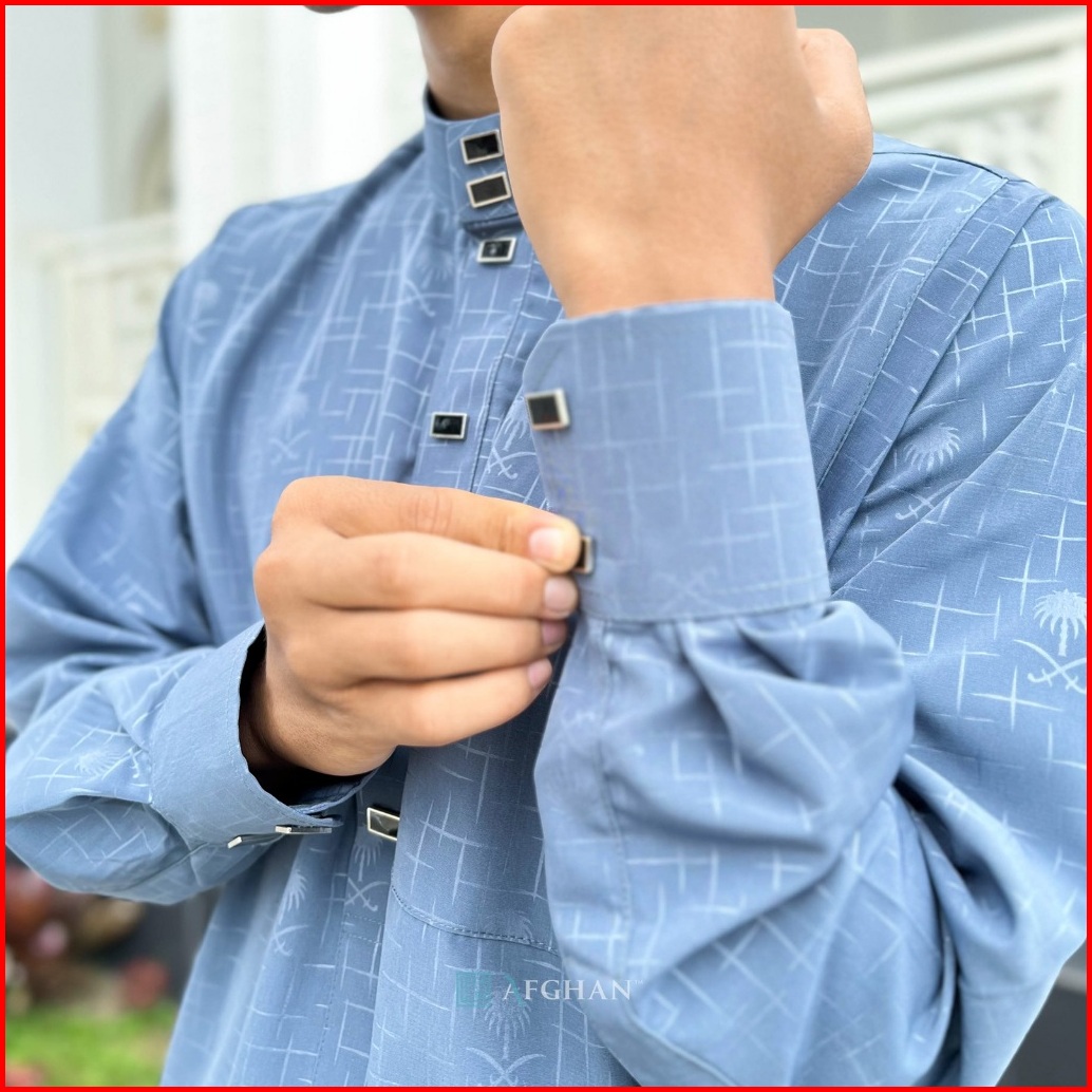Afghan Jubah Embos Bsy Motif Pohon Kurma Model Thobe Adnan Type Lengan Panjang Manset Dilengkapi Kancing Snap Premium Ba