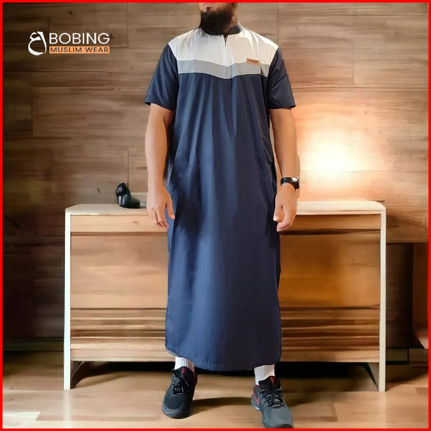Jubah Gamis Pria Jubba Yamani List Pria Lengan Pendek