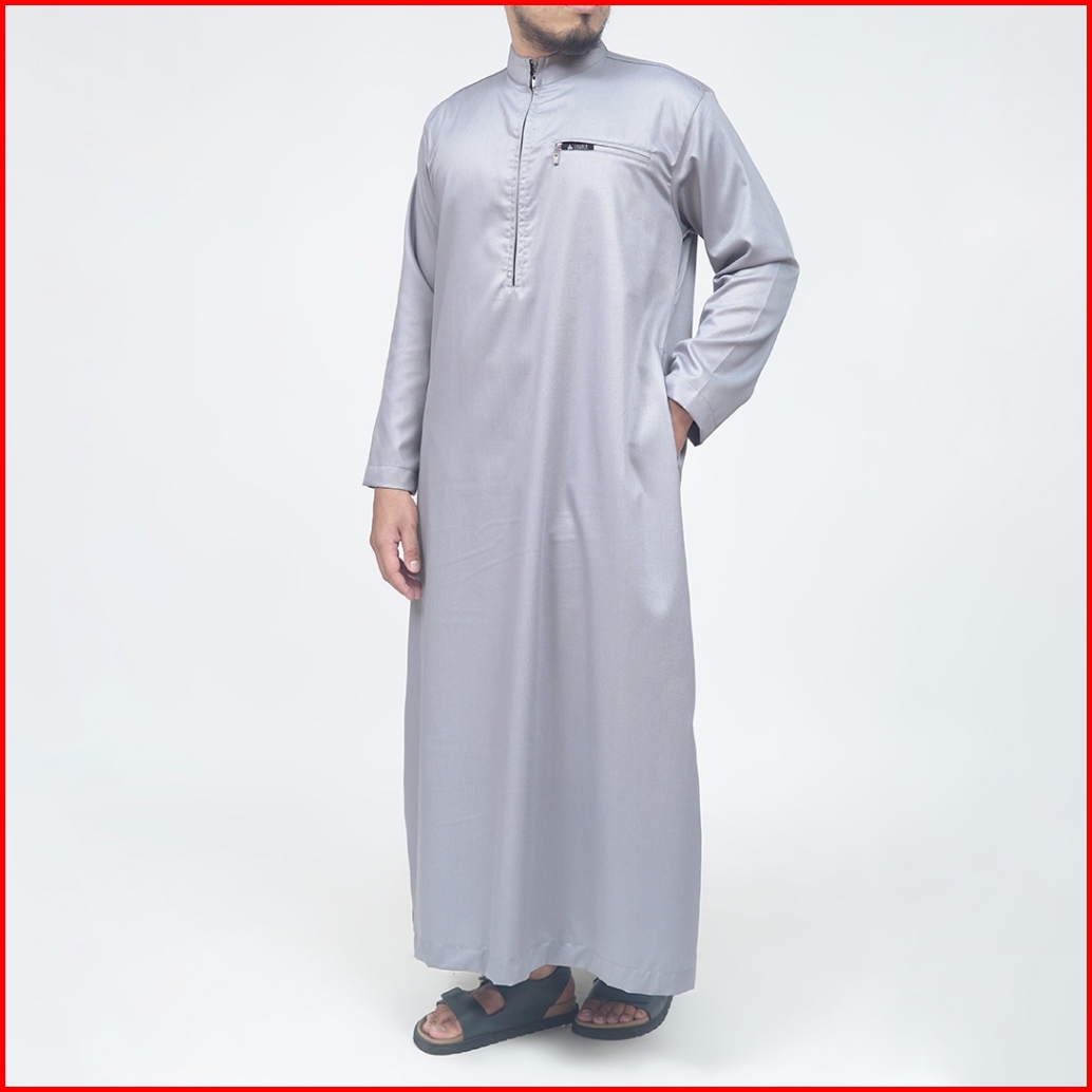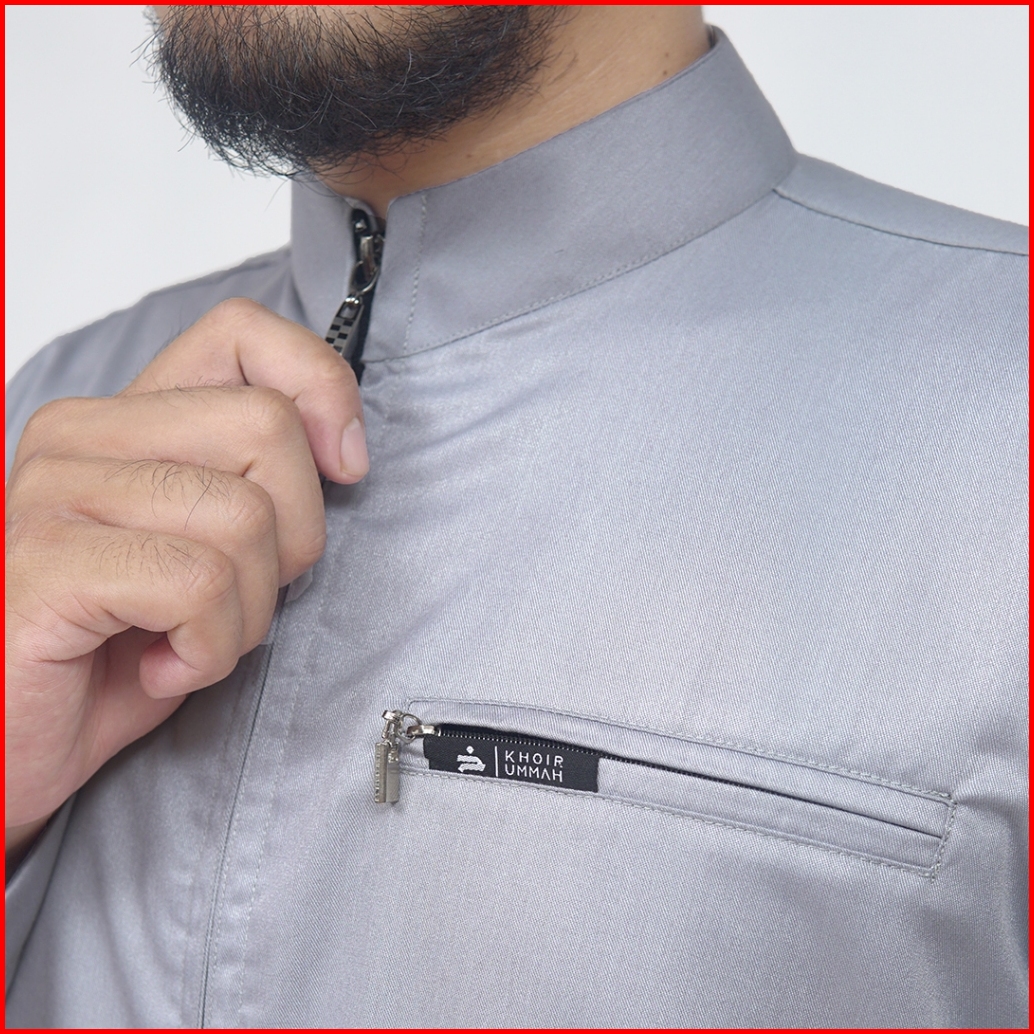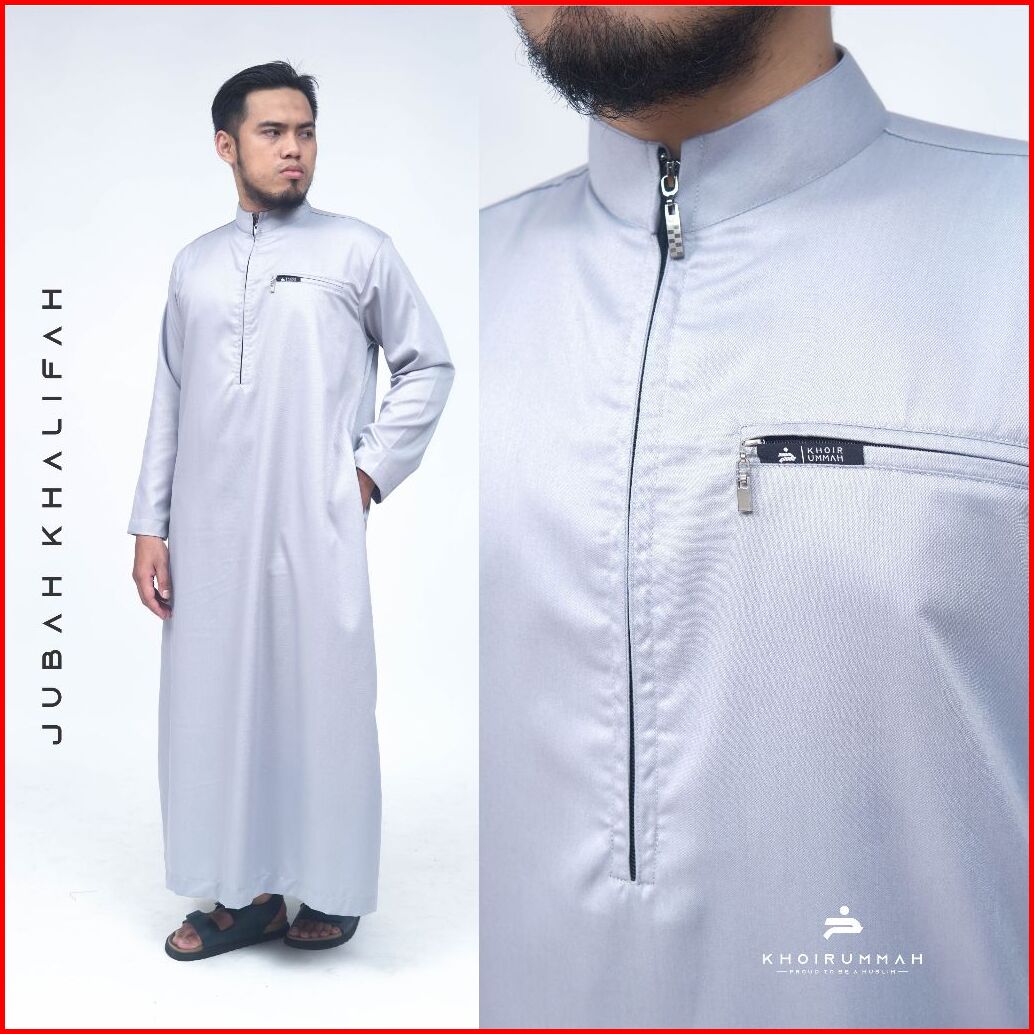 Khoirummah - Jubah Khalifah - Gamis Pria Dewasa Lengan Panjang Half Zipper - Light Grey