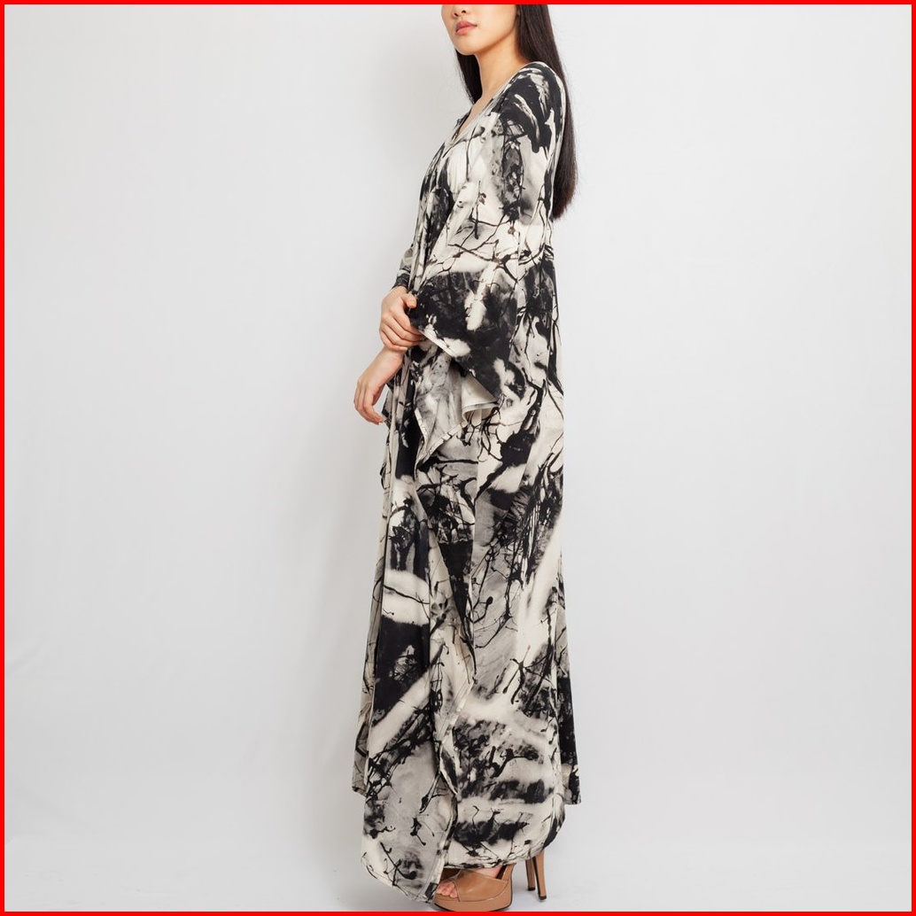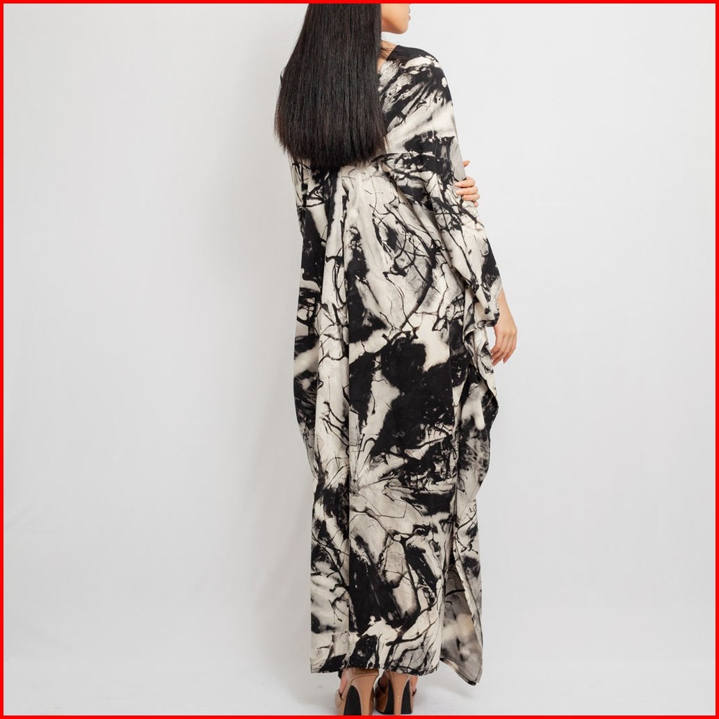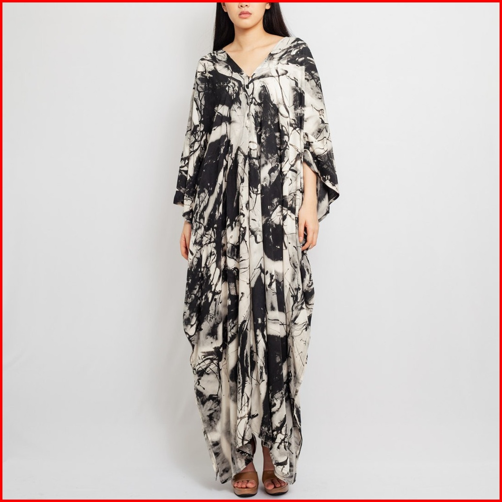 Marble Kaftan Black White - Rayon Premium Nyaman Hitam Putih