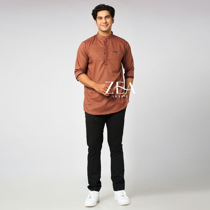 BAJU KOKO PRIA DEWASA Zeaarabic Kemeja Koko Pria Basic Polos Hitam 3/4