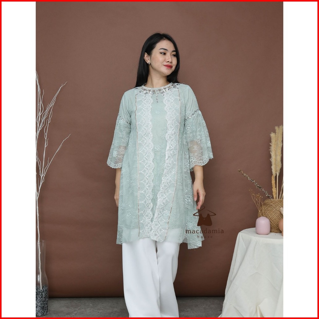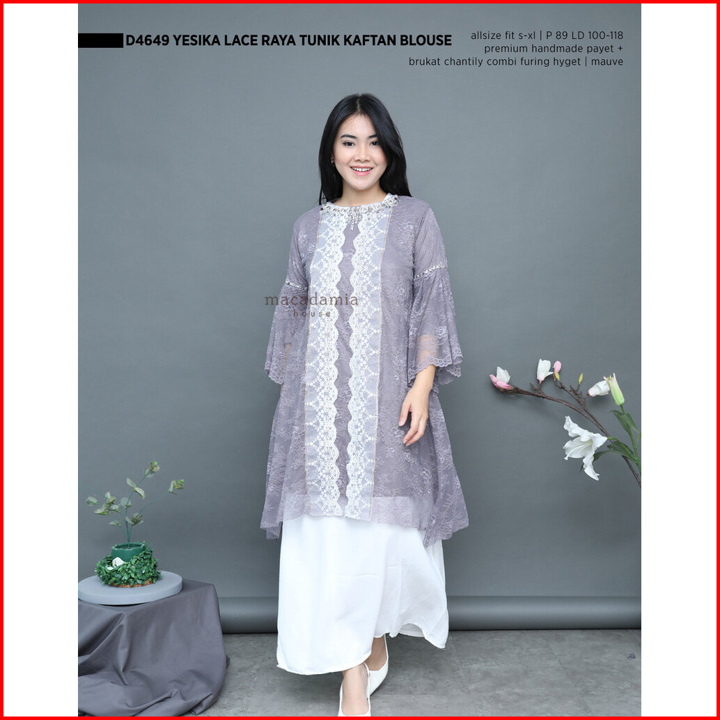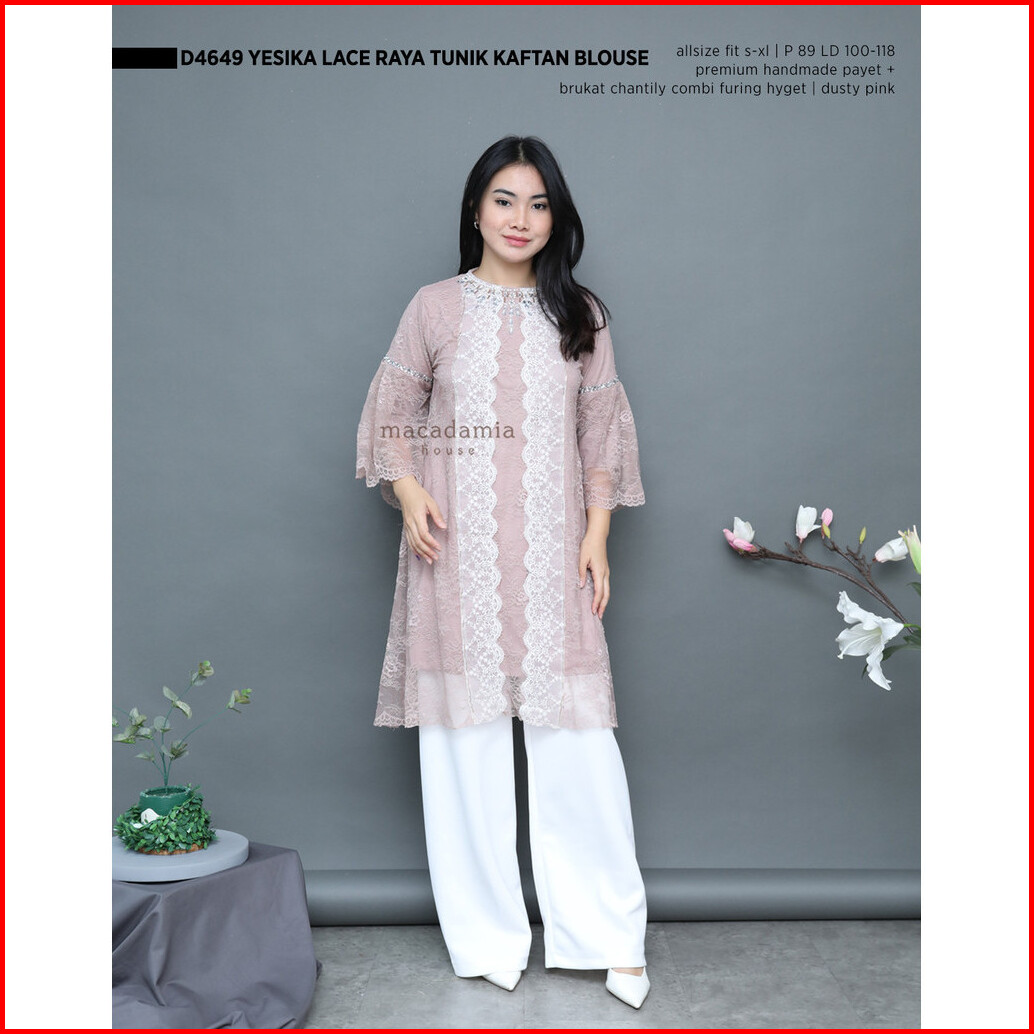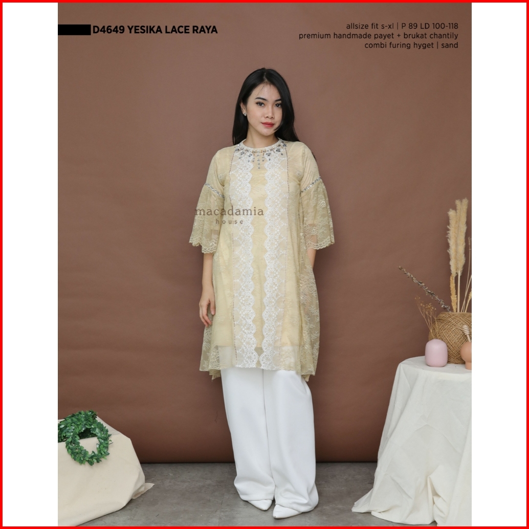 Macadamia House - D4649 Yesika Lace Raya Tunik Kaftan Blouse Lebaran Pake Payet Mix Lace Pattern