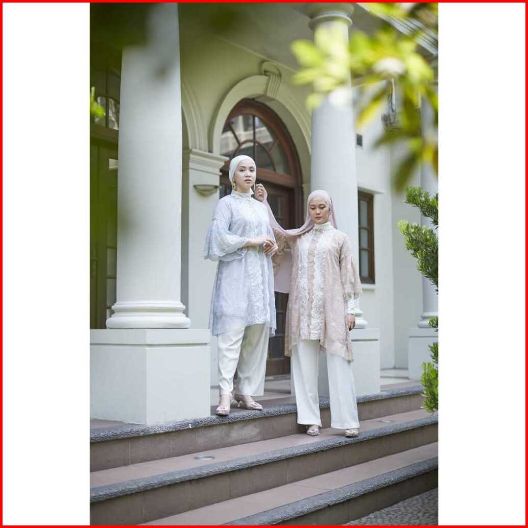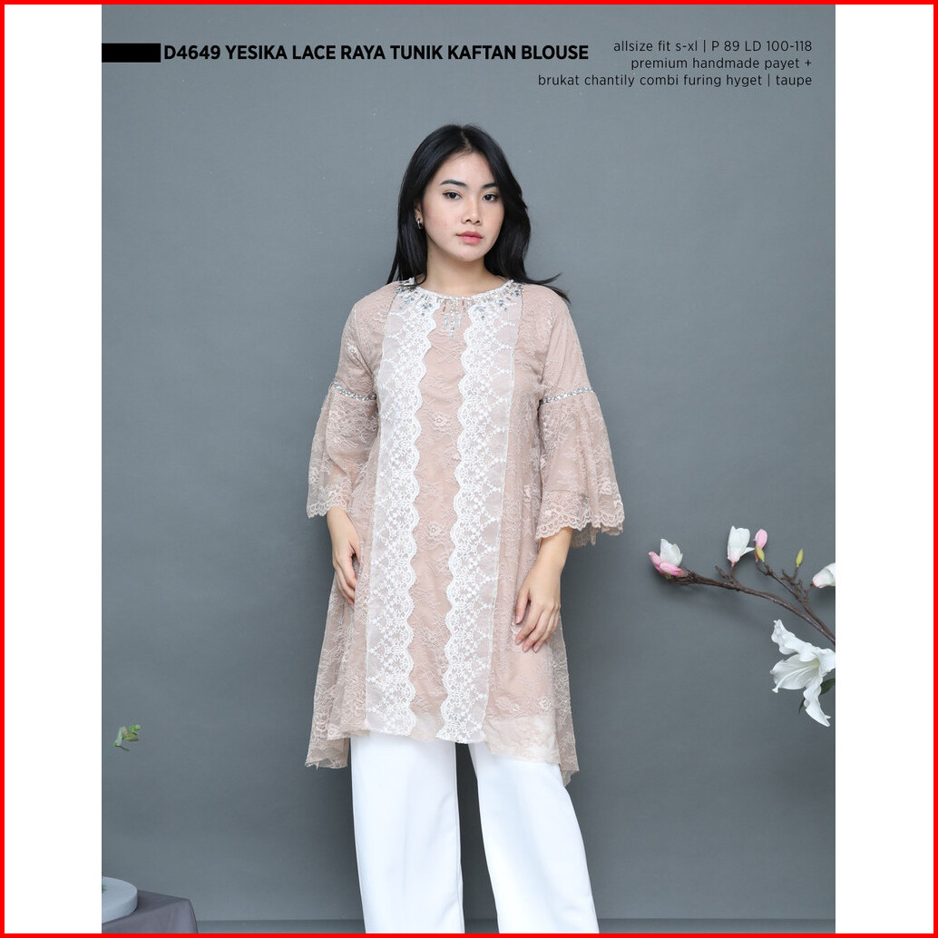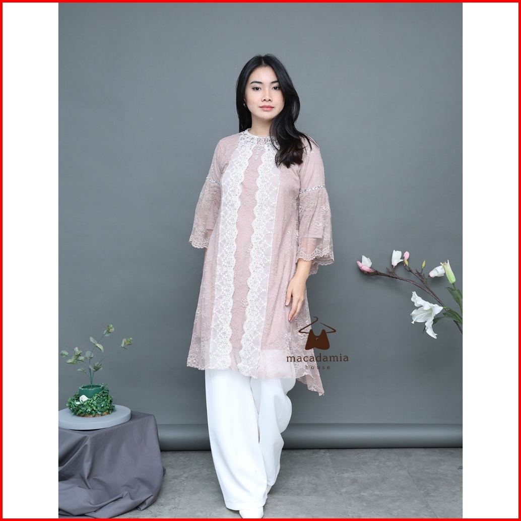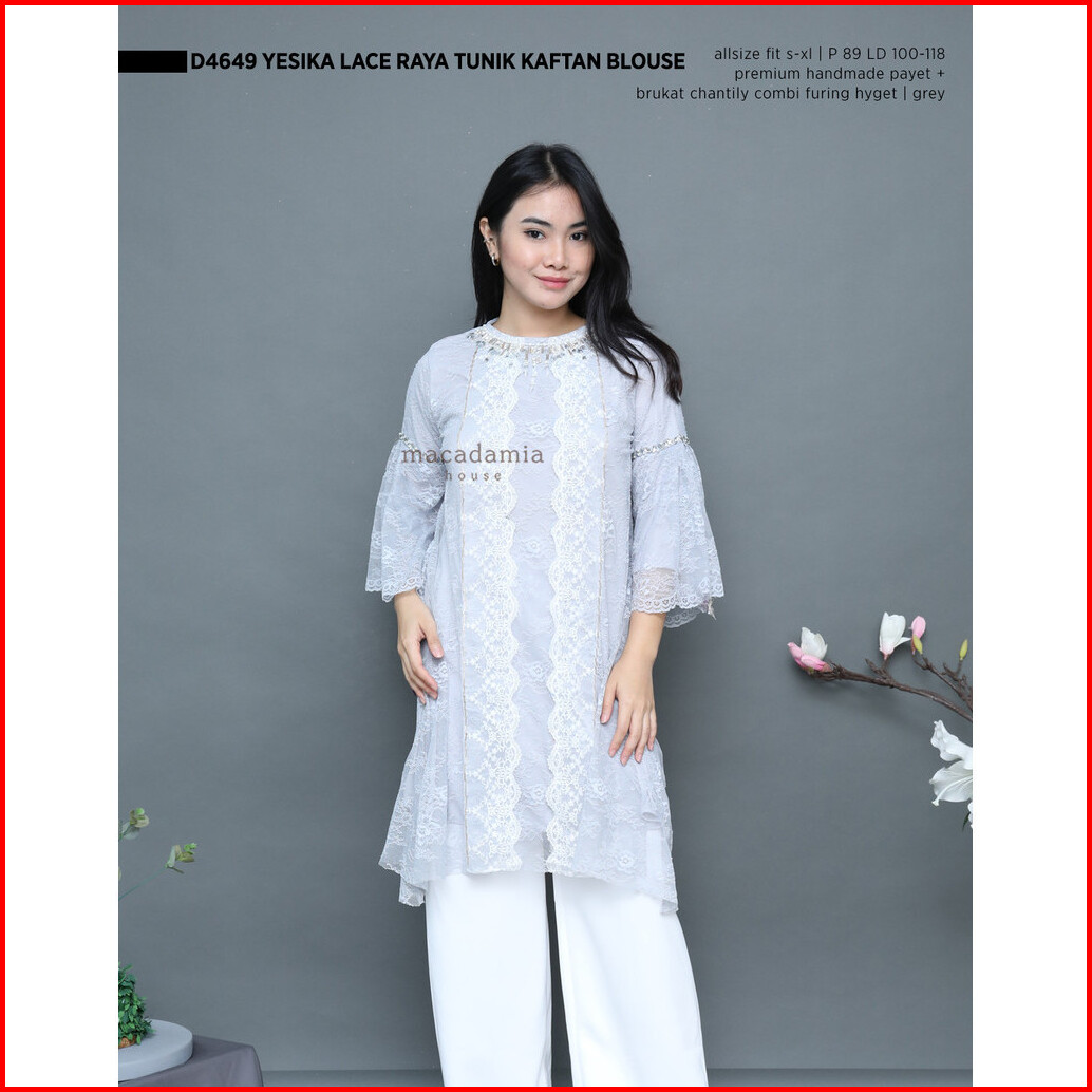 Macadamia House - D4649 Yesika Lace Raya Tunik Kaftan Blouse Lebaran Pake Payet Mix Lace Pattern