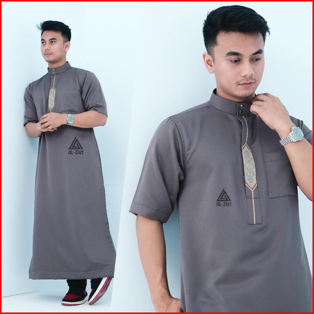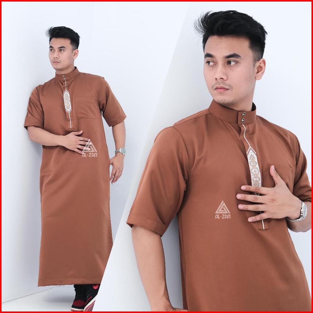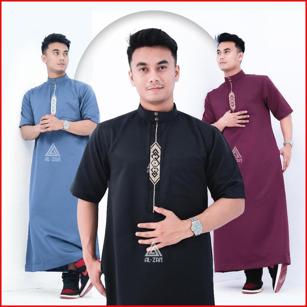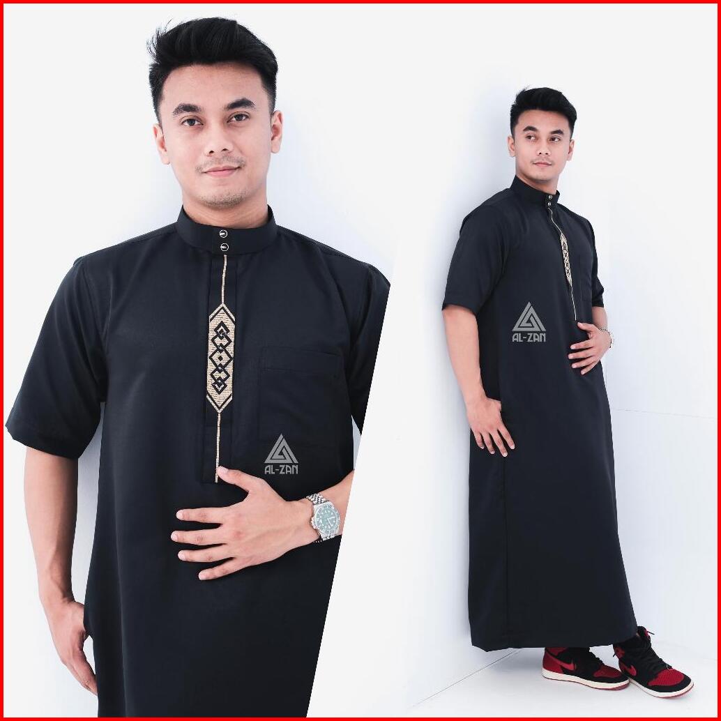 Jubah Reguler Pria Lengan Pendek Gamis Pria Jubah Muslim Pria Dewasa Bordir Pendek Hitam Katun Jubbah Thobe Daffah Alzan