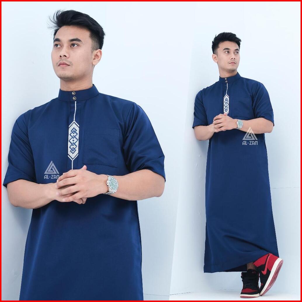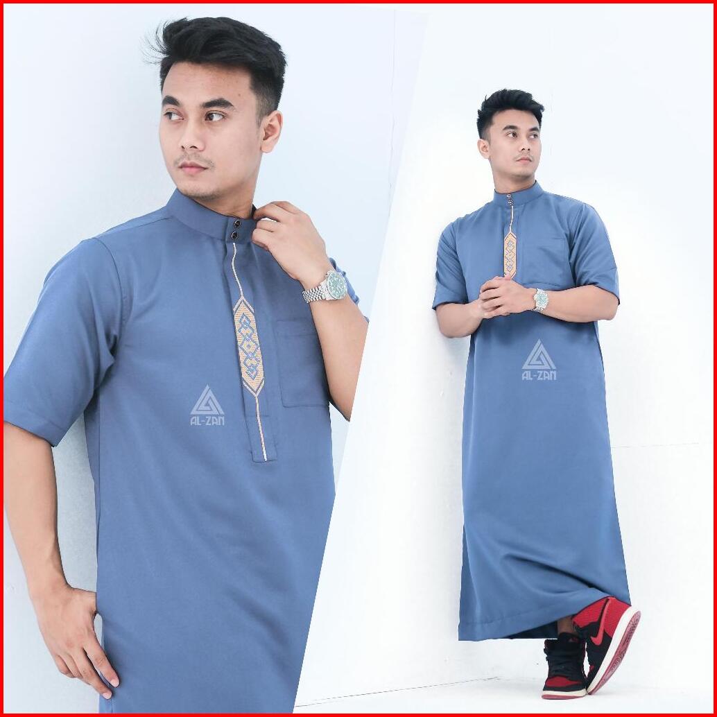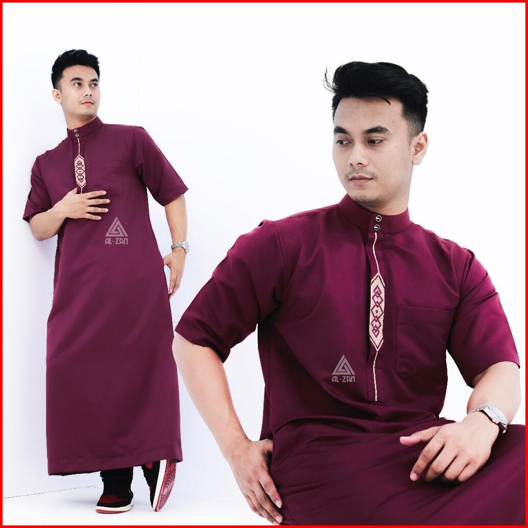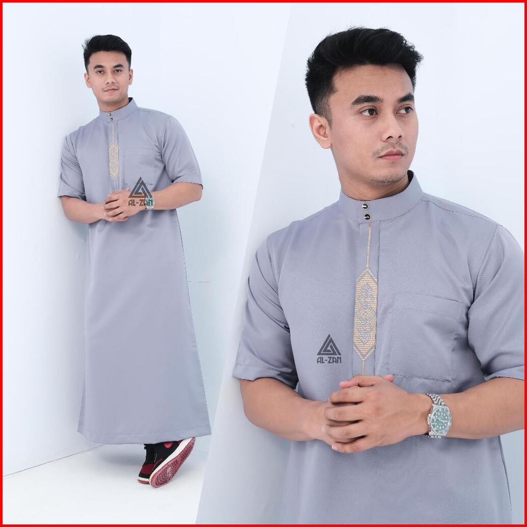 Jubah Reguler Pria Lengan Pendek Gamis Pria Jubah Muslim Pria Dewasa Bordir Pendek Hitam Katun Jubbah Thobe Daffah Alzan