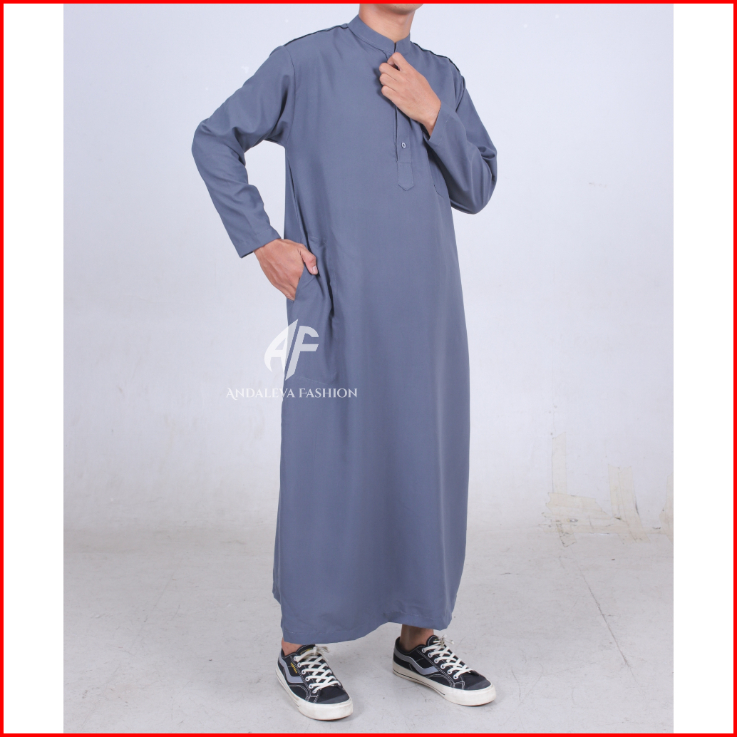 Jubah Muslim Pria Dewasa Lengan Panjang Kekinian Premium Model Kancing - Jubah Pria Muslim - Gamis Muslim Pria - Gamis J