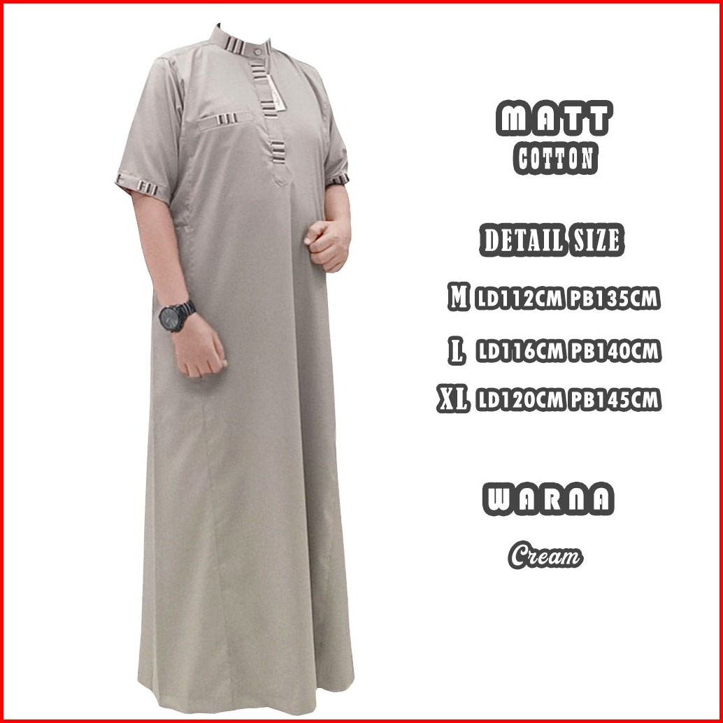 Jubah Gamis Pria Dewasa Premium Bahan Katun Lengan Pendek