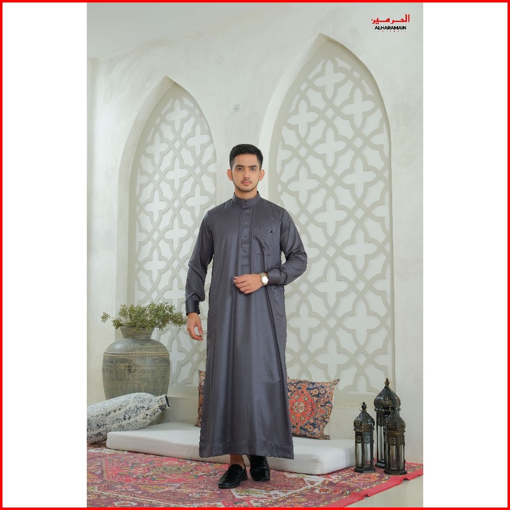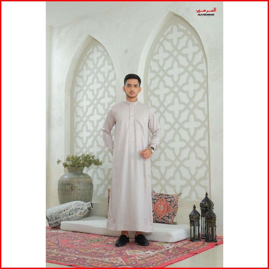 Al Haramain Series Polyester Thobe Hamzah Jubah Gamis Pria Dewasa 241837 38 39 Abu Tua Coklat Susu Cream