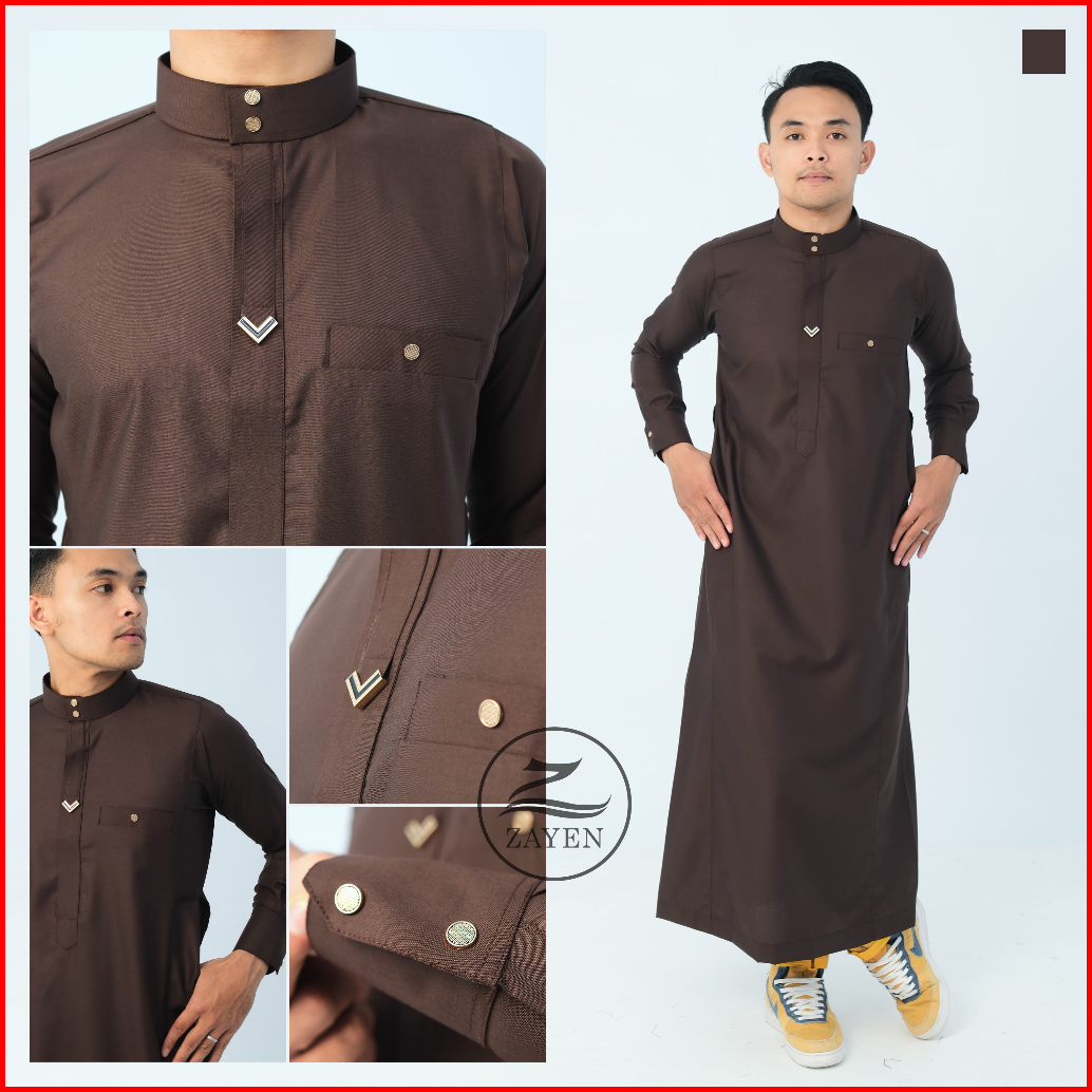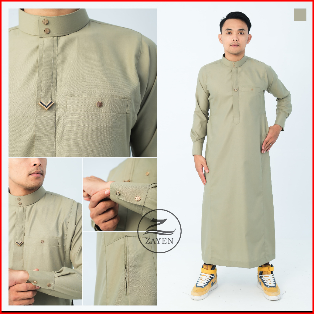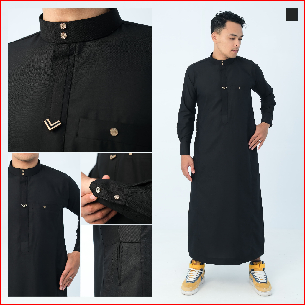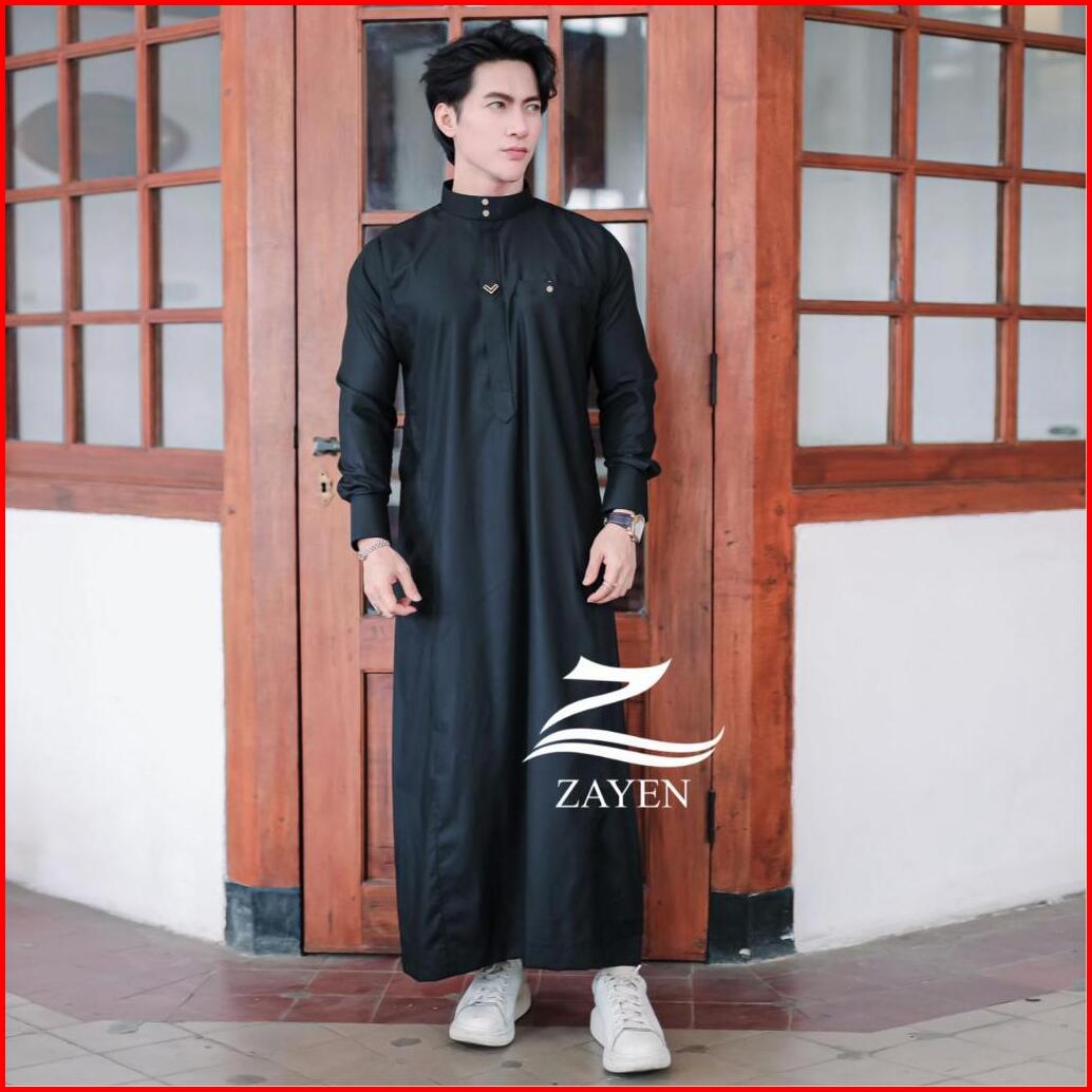 Jubah Slimfit Pria Gamis Pria Slimfit Jubbah Zayen Jubah Muslim Pria Model Terbaru Panjang Manset Kancing Hitam Katun Ro