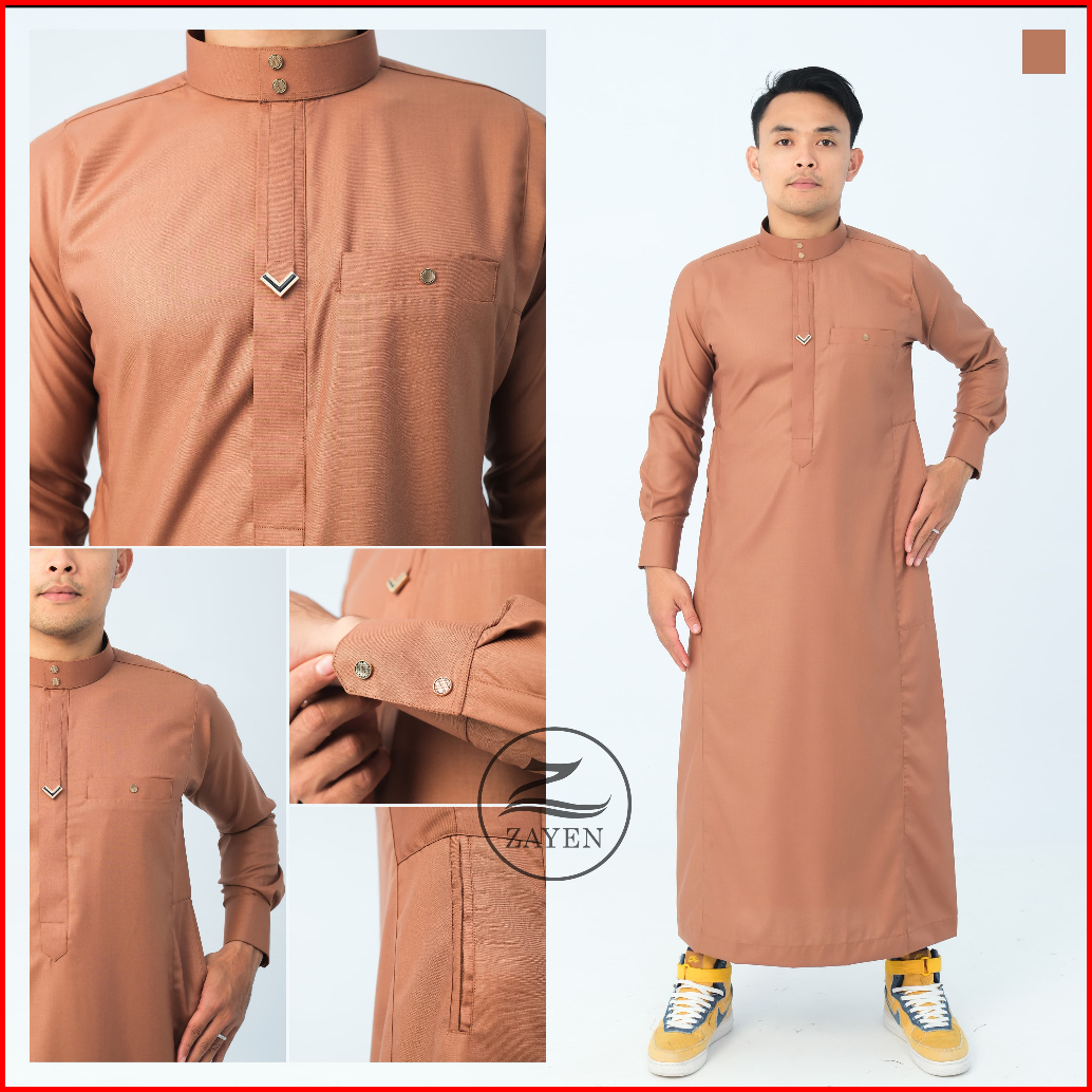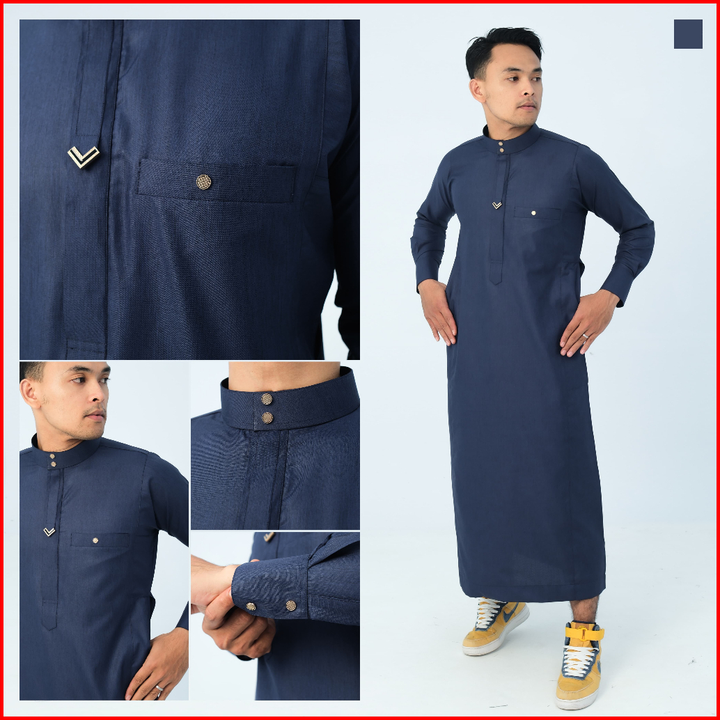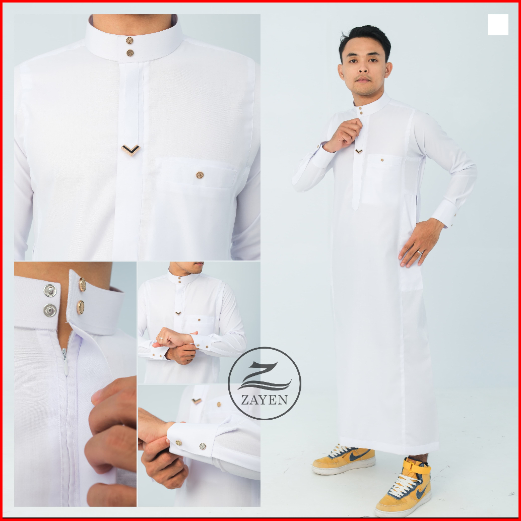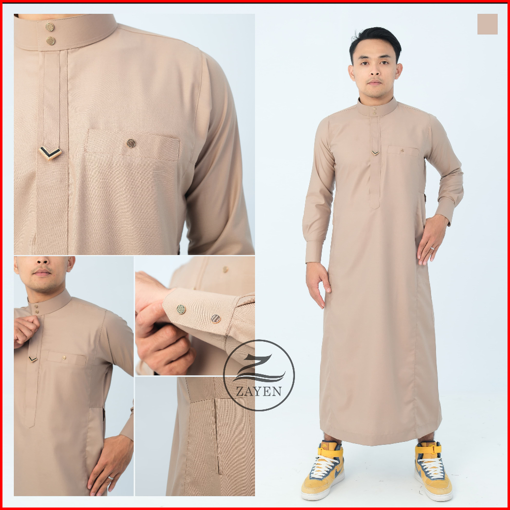 Jubah Slimfit Pria Gamis Pria Slimfit Jubbah Zayen Jubah Muslim Pria Model Terbaru Panjang Manset Kancing Hitam Katun Ro